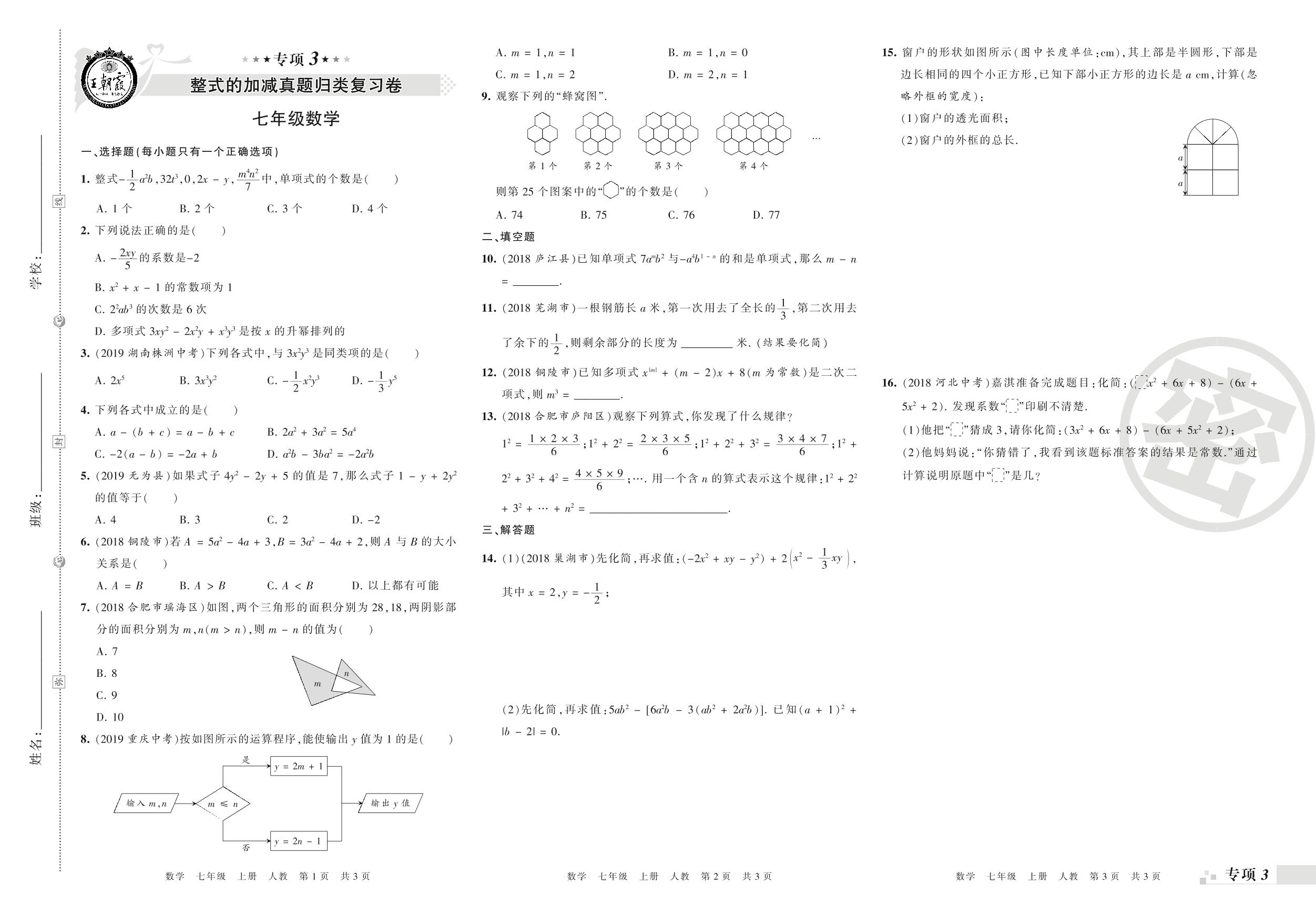 王朝霞期末专项卷——整式的加减、一元一次方程的认识与解法真题归类复习七年级上册数学(人教版)_R210805163311【0】