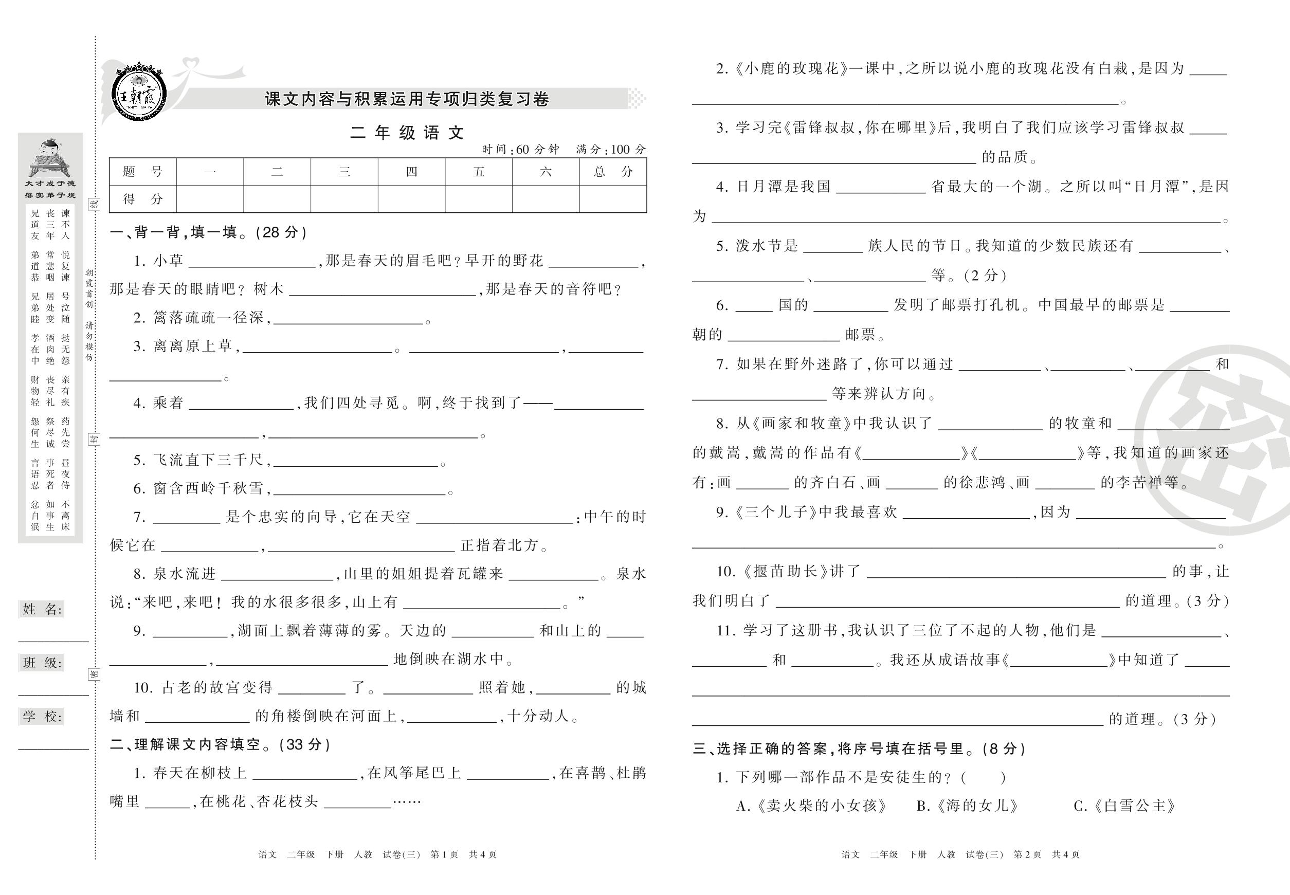 王朝霞期末专项卷二年级下册语文(人教版)_R21080173940【3】