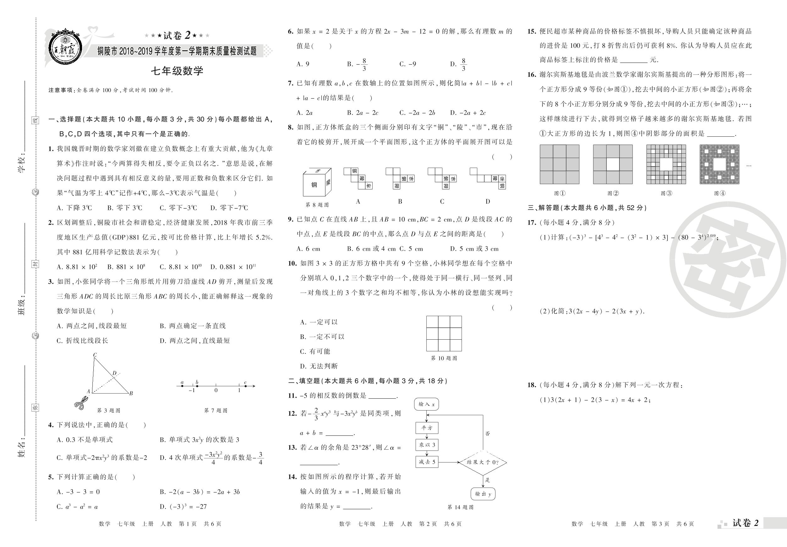 2018-2019学年第一学期铜陵市七年级数学试卷(人教版)【2】