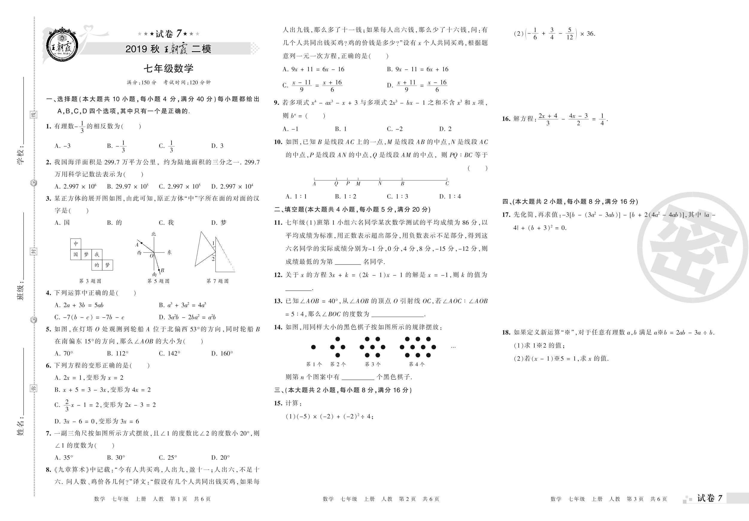 王朝霞期末模拟卷七年级上册数学(人教版)_R210805163355【7】