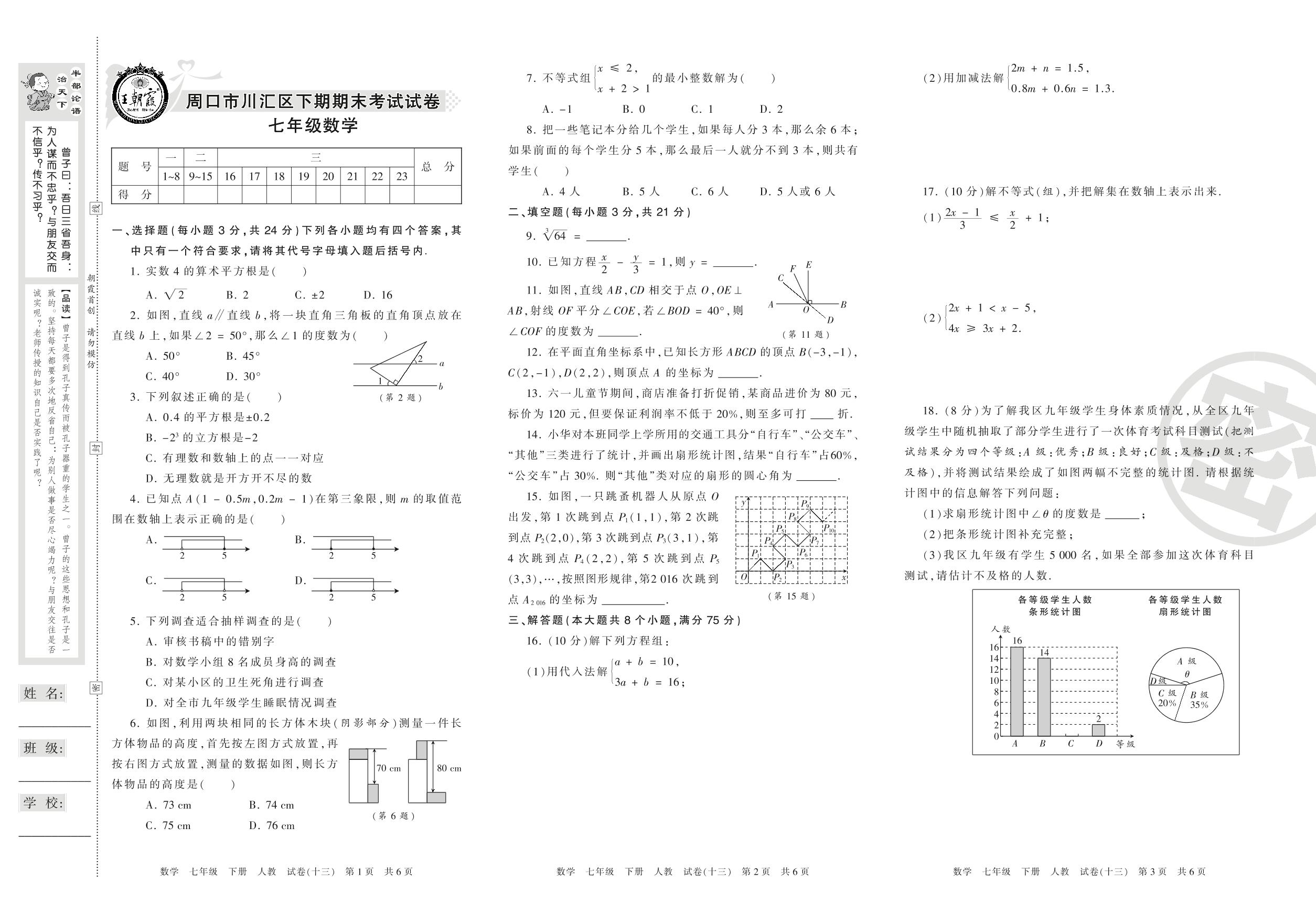 七年级数学人教版下册期末卷