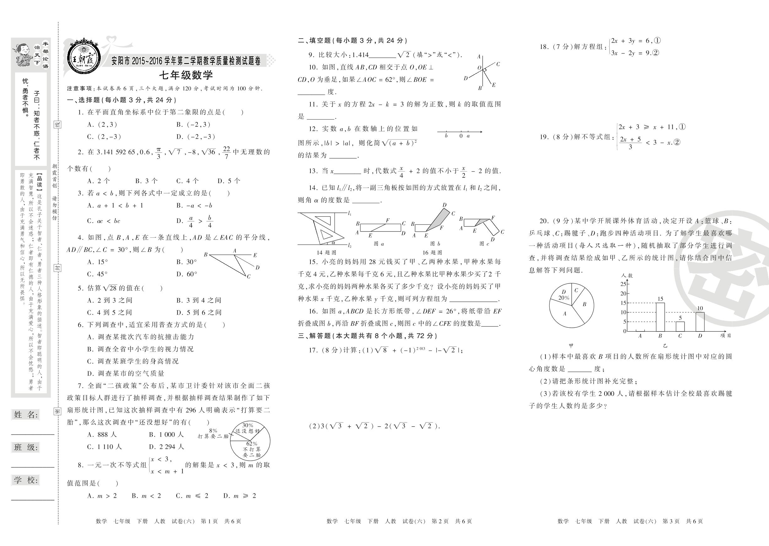 2015-2016学年第二学期安阳市七年级数学试卷(人教版)【6】