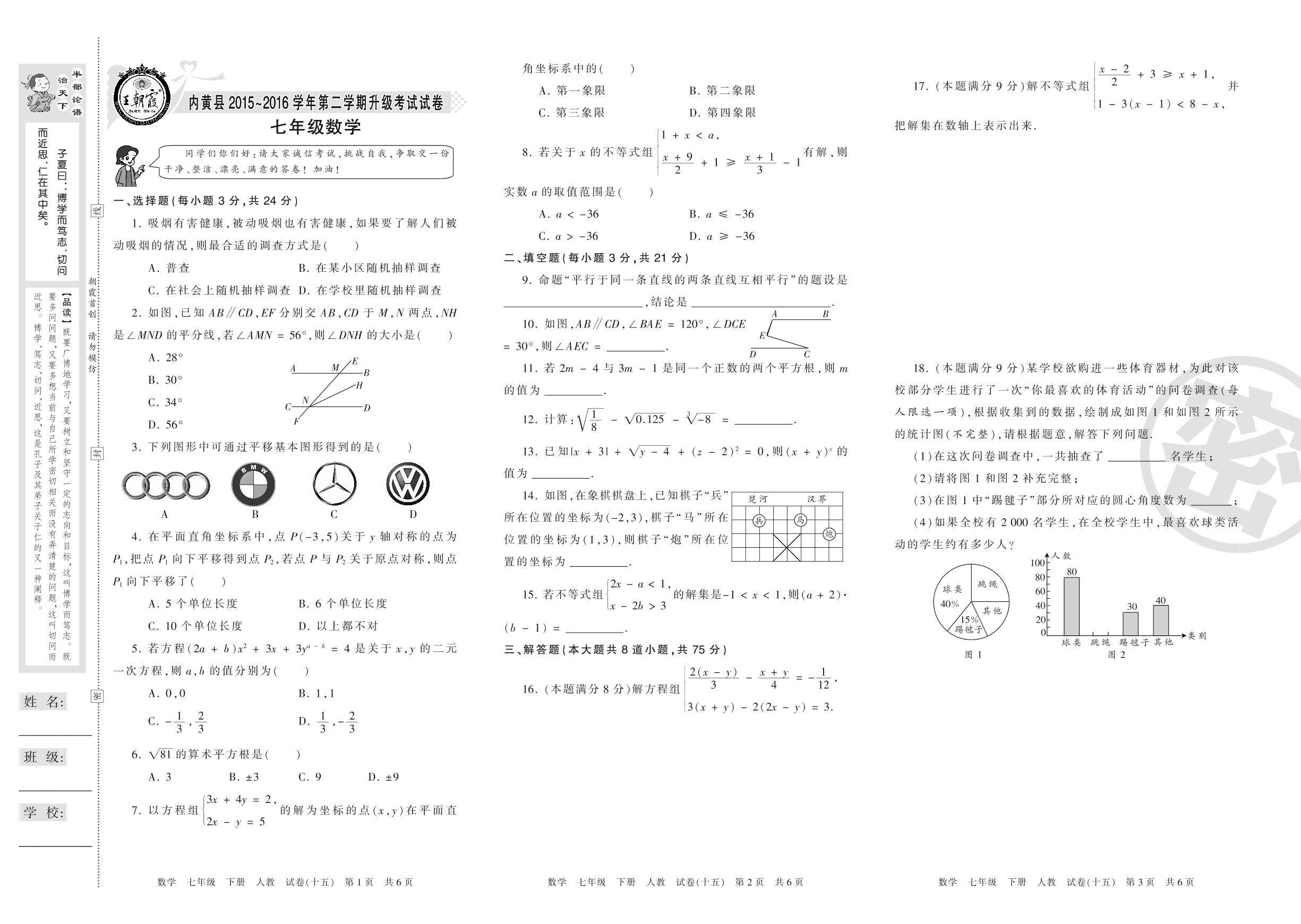 2015-2016学年第二学期安阳市内黄县七年级数学试卷(人教版)【15】