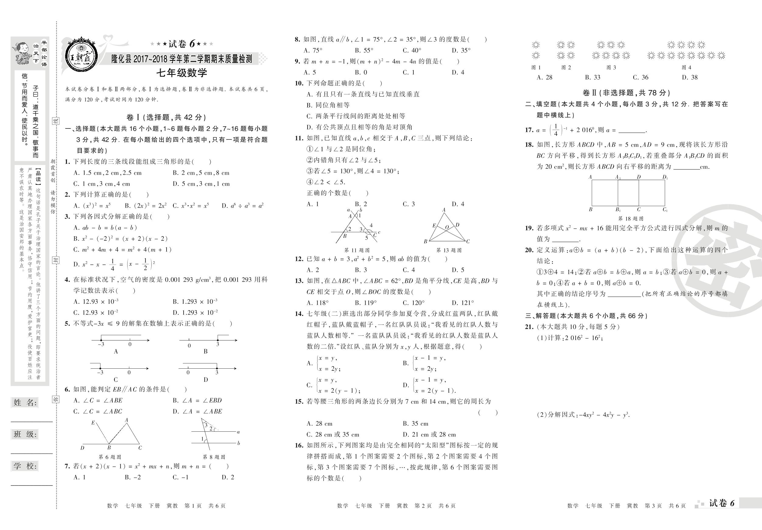 2017-2018学年第二学期承德市隆化县七年级数学试卷(冀教版)【6】