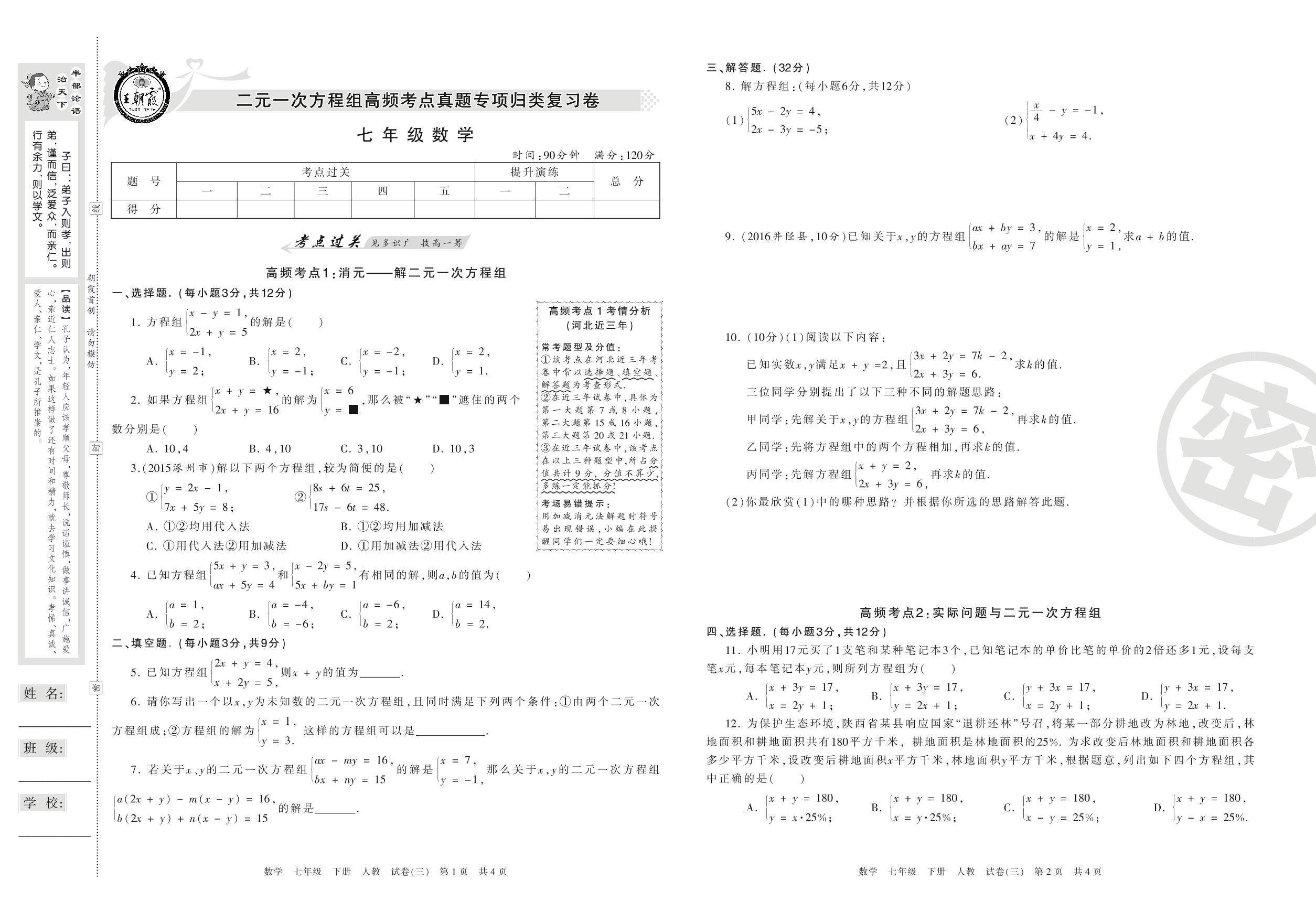 王朝霞期末专项卷七年级下册数学(人教版)_R210805164205【3】