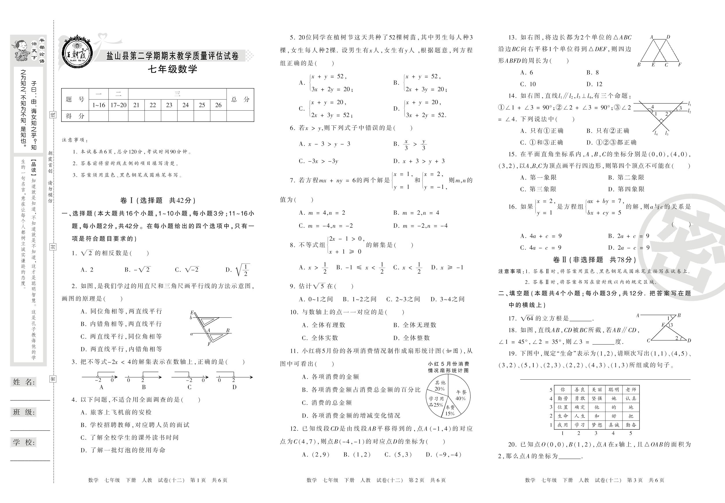 2015-2016学年第二学期沧州市盐山县七年级数学试卷(人教版)【12】