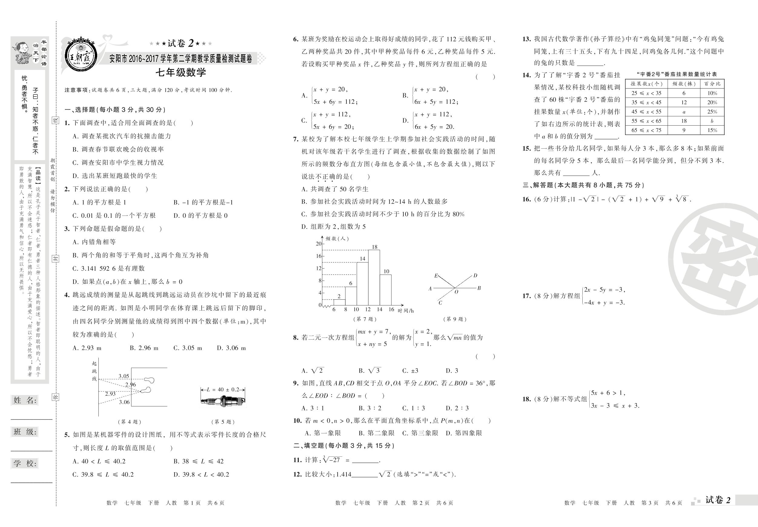 2016-2017学年第二学期安阳市七年级数学试卷(人教版)【2】