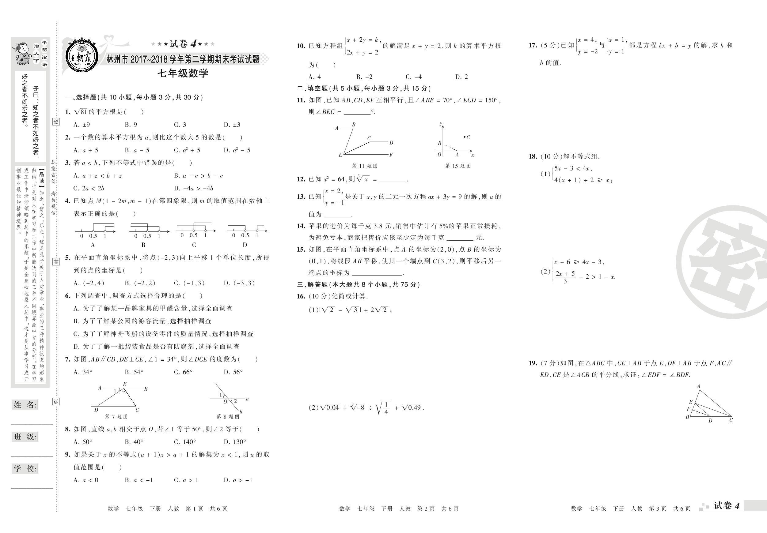 2017-2018学年第二学期林州市七年级数学试卷(人教版)【4】