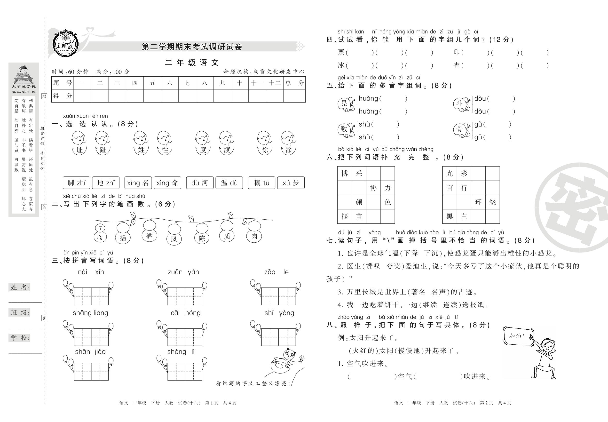 王朝霞期末调研卷二年级下册语文(人教版)【16】