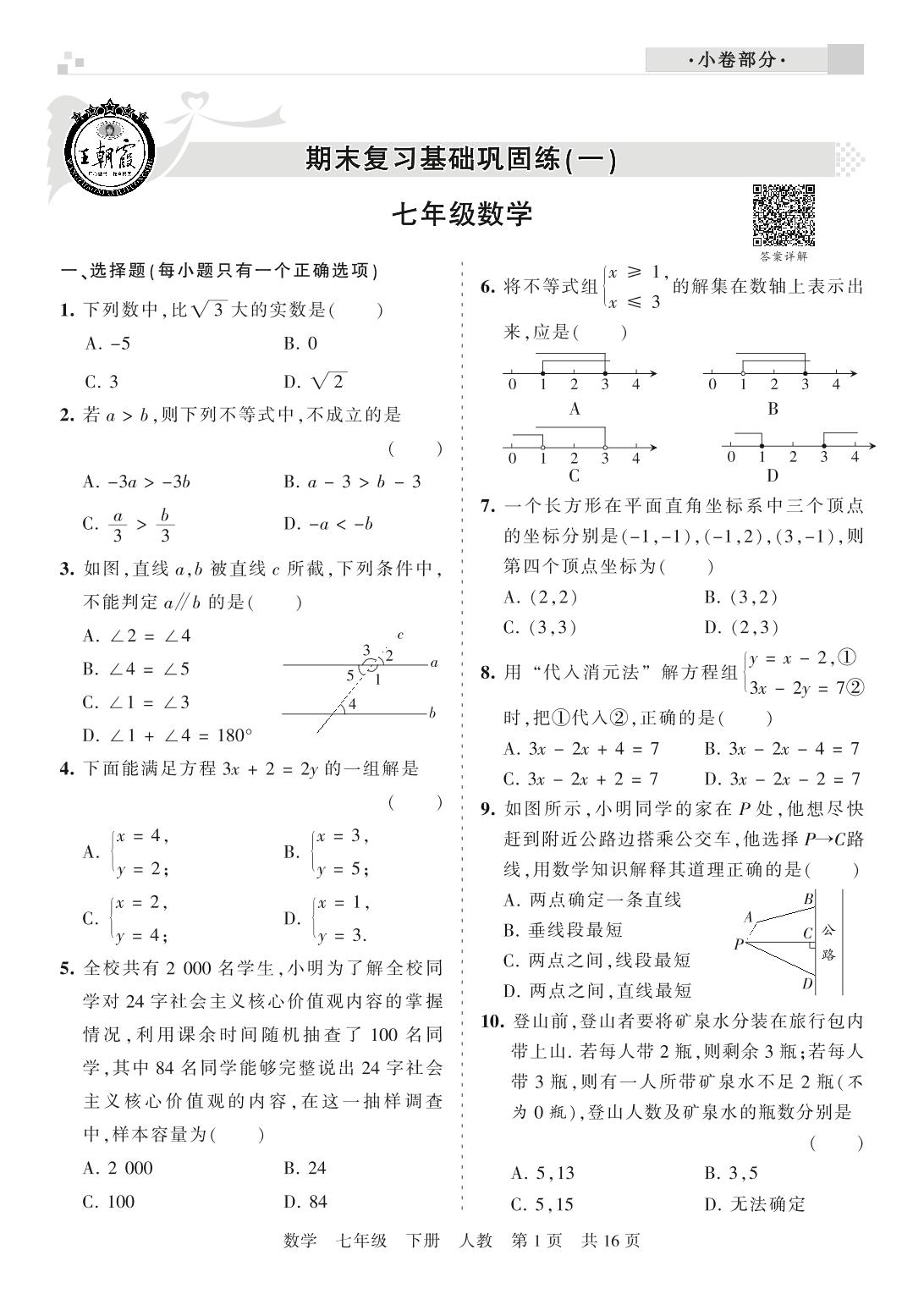 王朝霞期末小卷——期末复习基础巩固练七年级下册数学(人教版)_R210805164726【0】