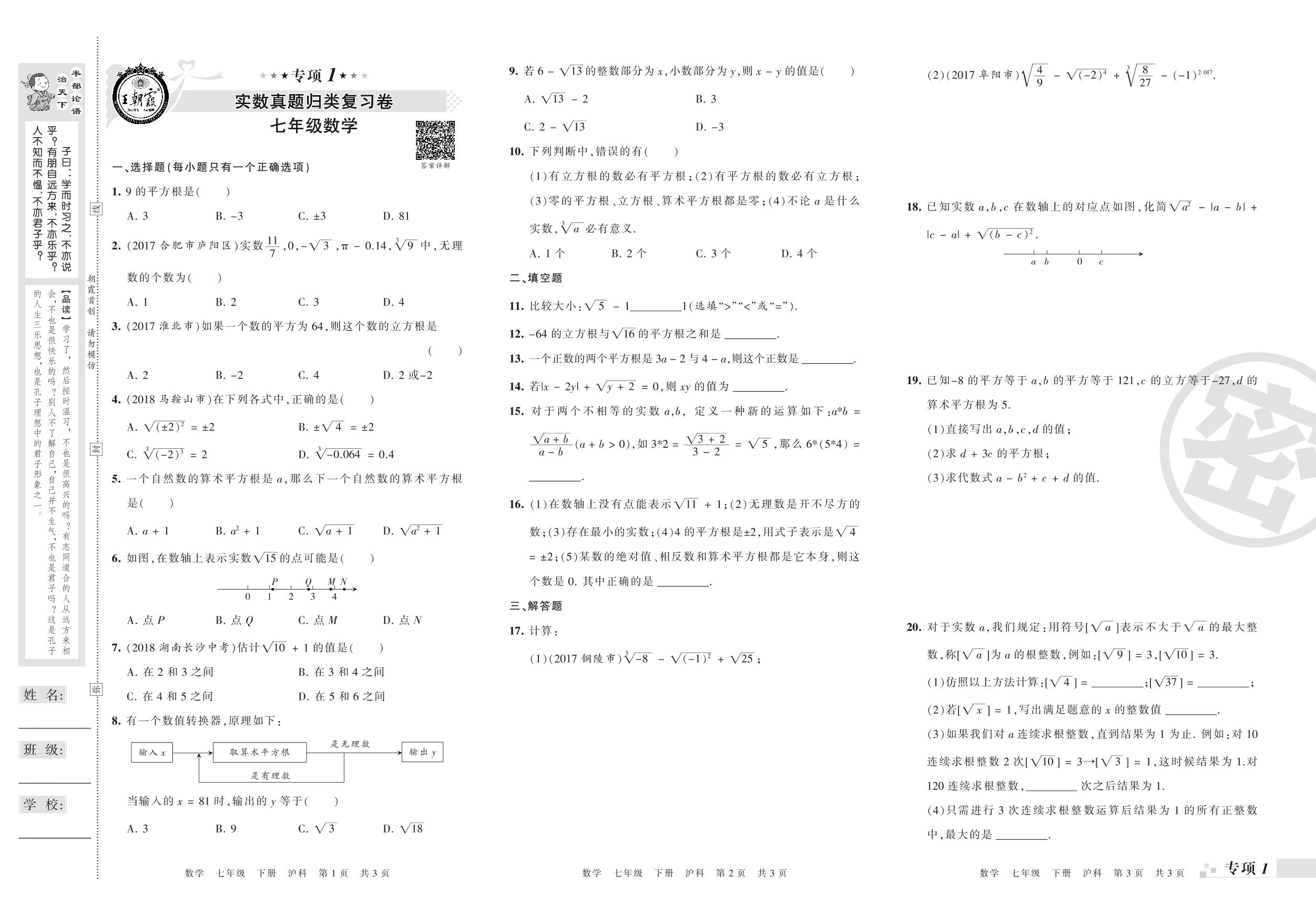 王朝霞期末专项卷——实数、一元一次不等式与一元一次不等式组的认识与解法真题归类复习卷七年级下册数学(沪科版)_R210805164740【0】