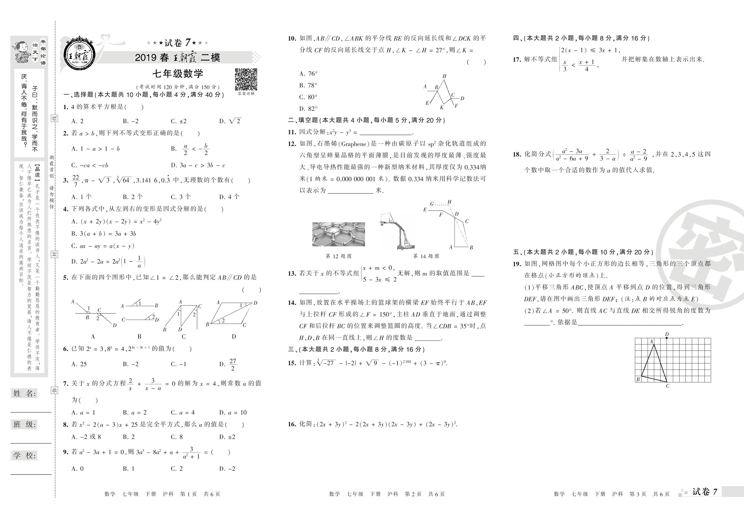 王朝霞期末模拟卷七年级下册数学(沪科版)_R210805164832【7】