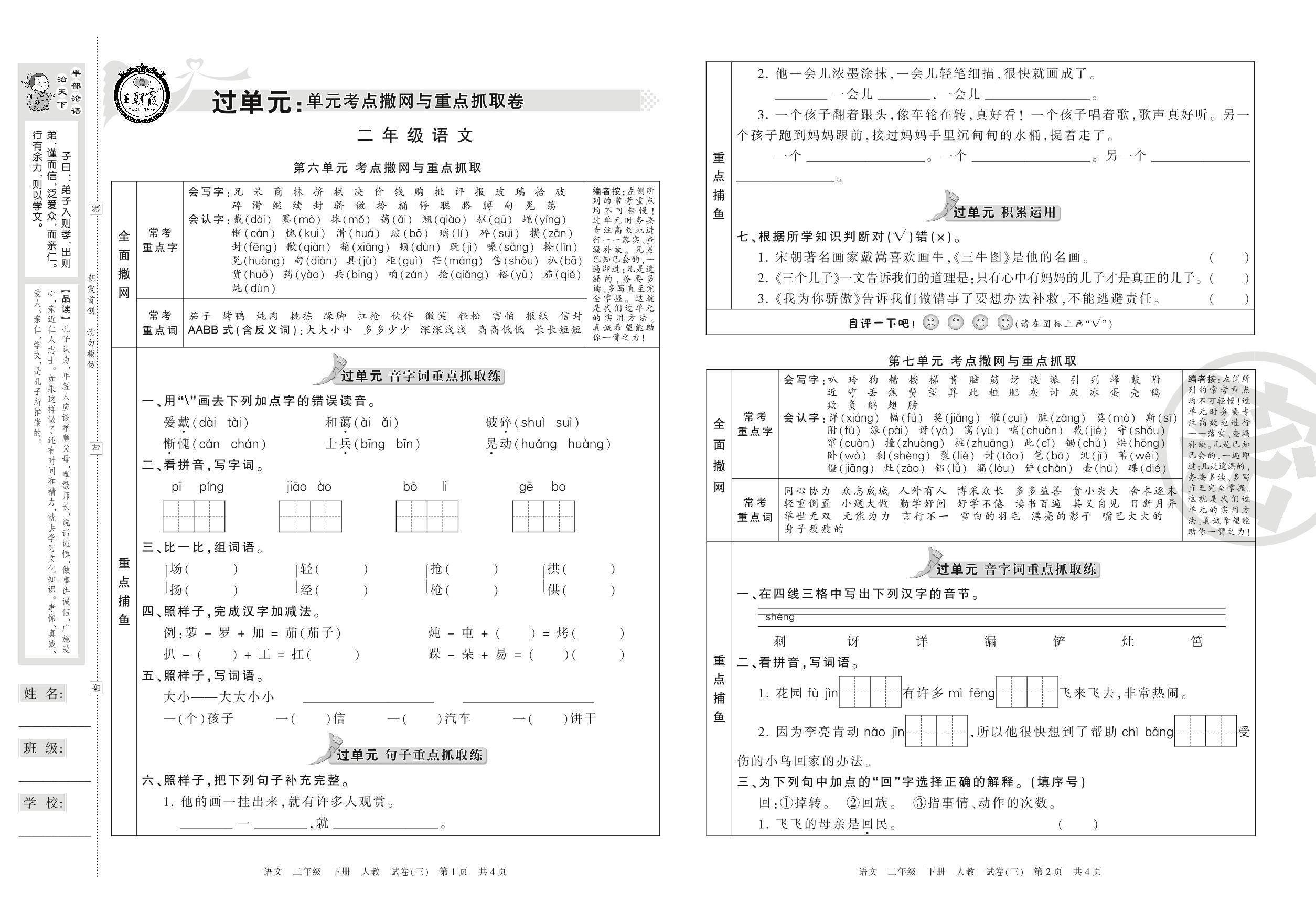 王朝霞期末过单元二年级下册语文(人教版)_R21080174054【3】