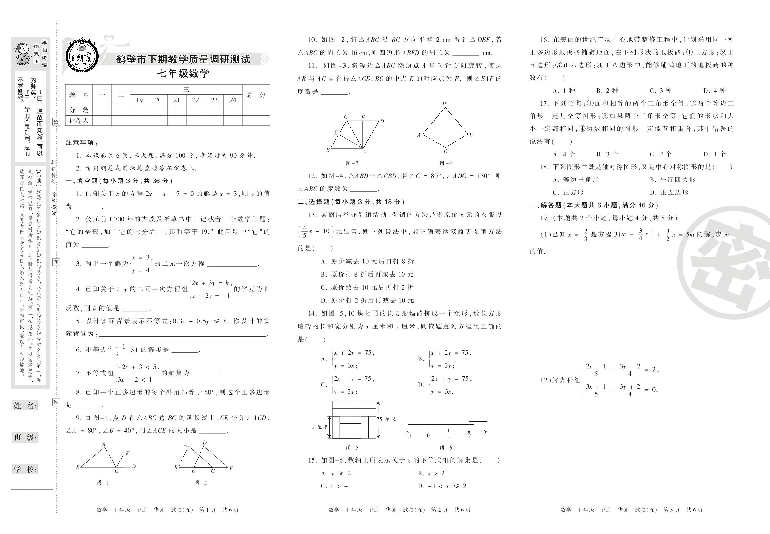 2015-2016学年第二学期鹤壁市七年级数学试卷(华师版)【5】