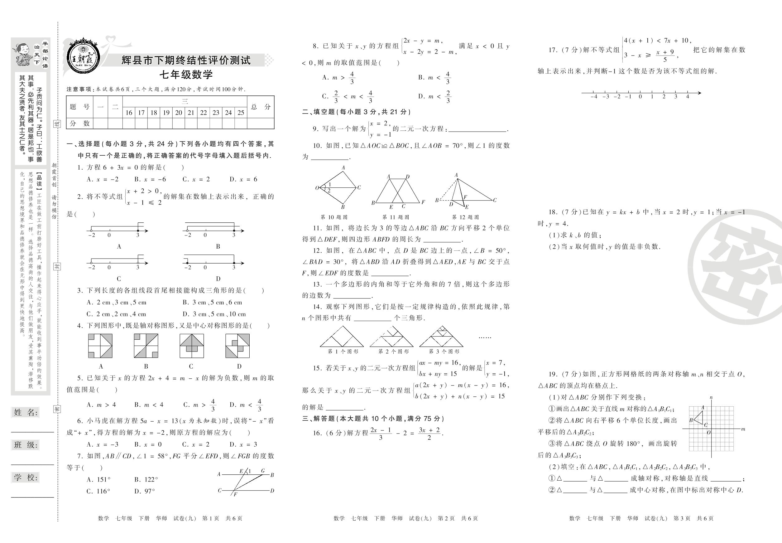 2015-2016学年第二学期辉县市七年级数学试卷(华师版)【9】