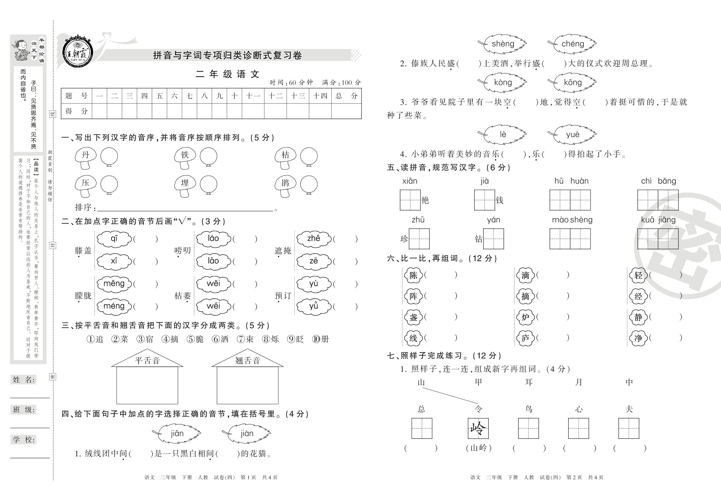 王朝霞期末专项卷二年级下册语文(人教版)_R21080174102【4】