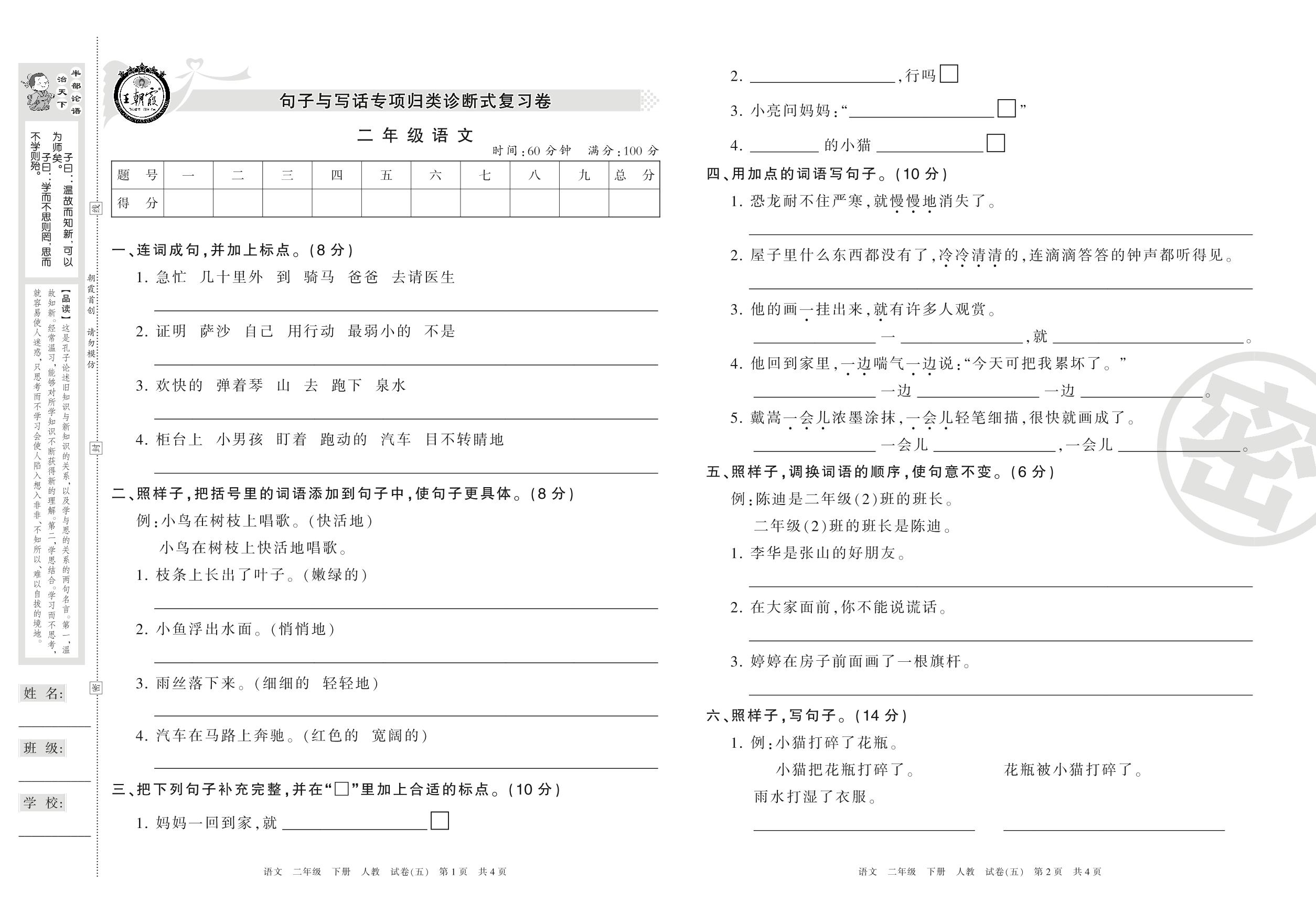 王朝霞期末专项卷二年级下册语文(人教版)_R21080174106【5】