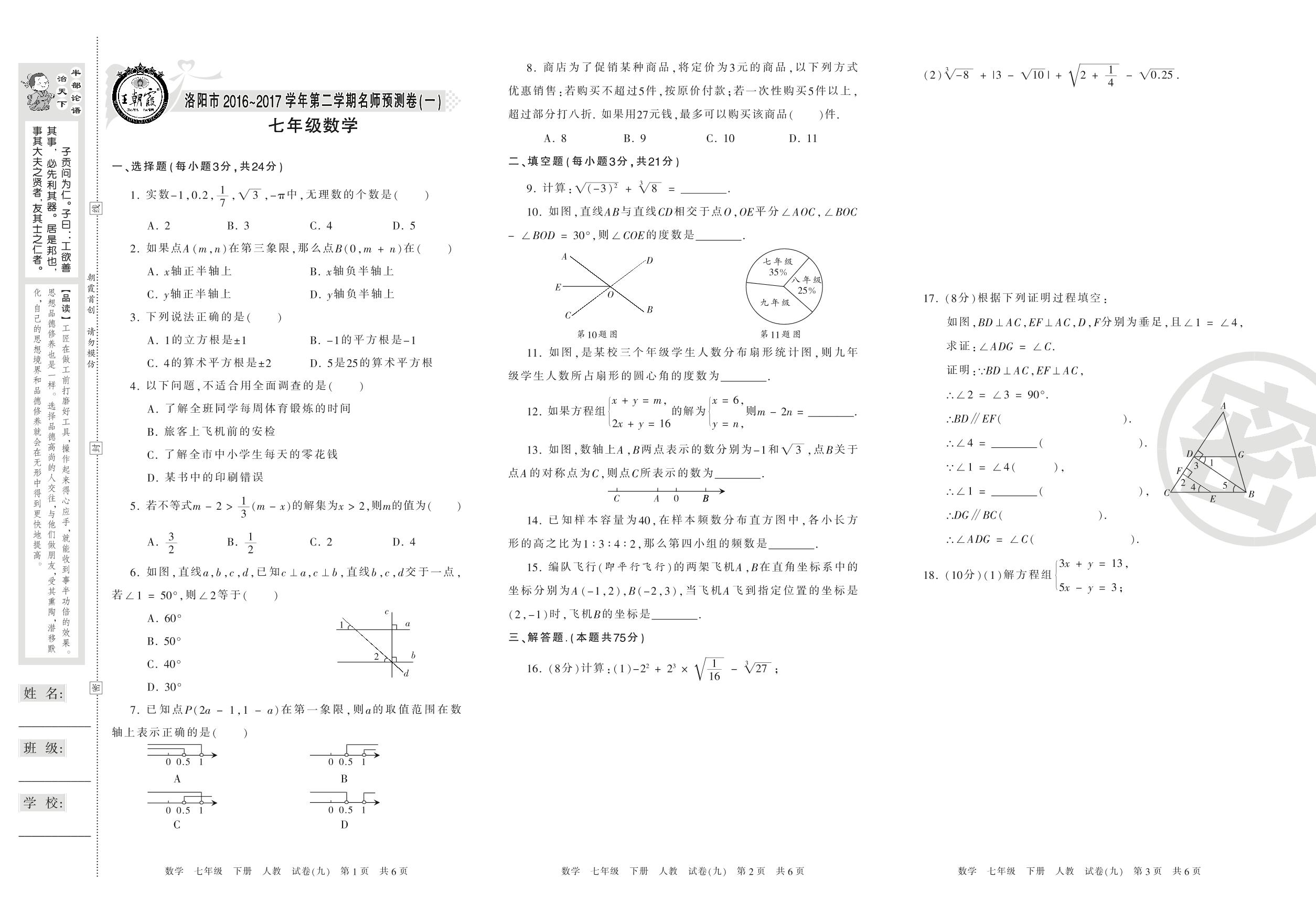 2015-2016学年第二学期洛阳市七年级数学试卷(人教版)【9】