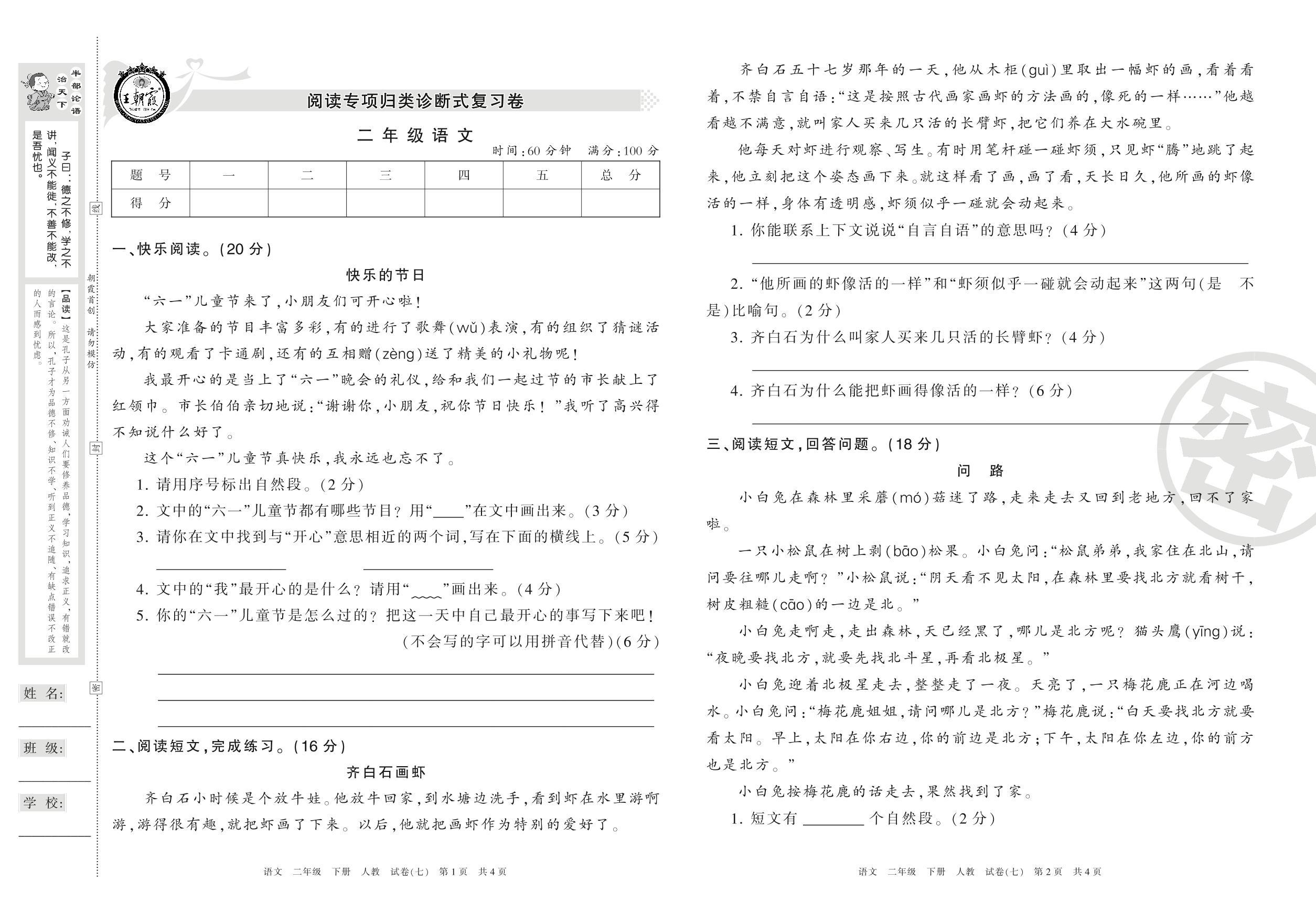 王朝霞期末专项卷二年级下册语文(人教版)_R21080174116【7】