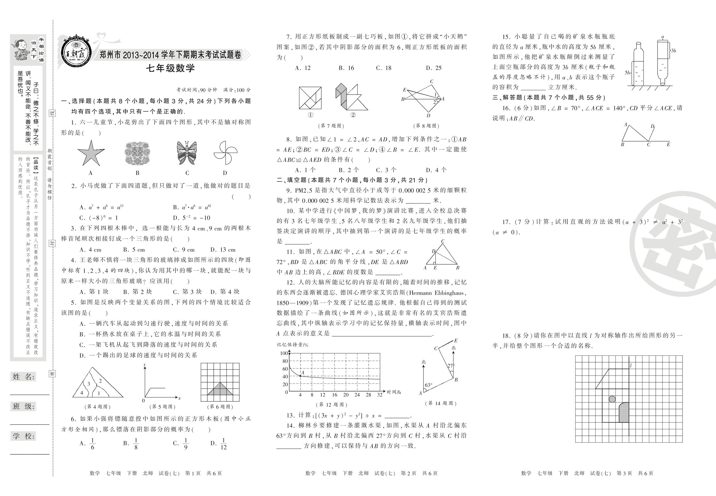 2013-2014学年第二学期郑州市七年级数学试卷(北师版)【7】