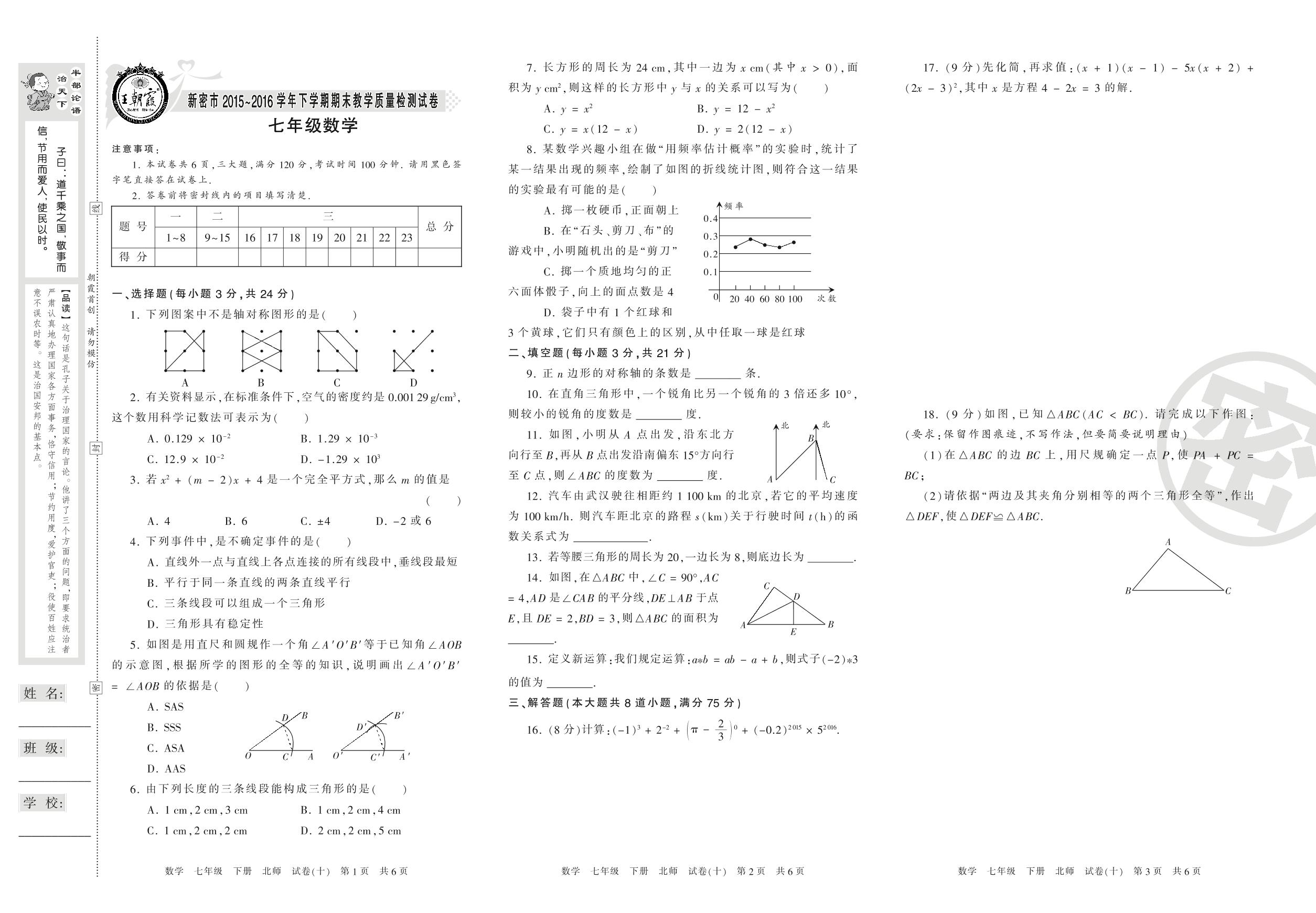 2015-2016学年第二学期新密市七年级数学试卷(北师版)【10】