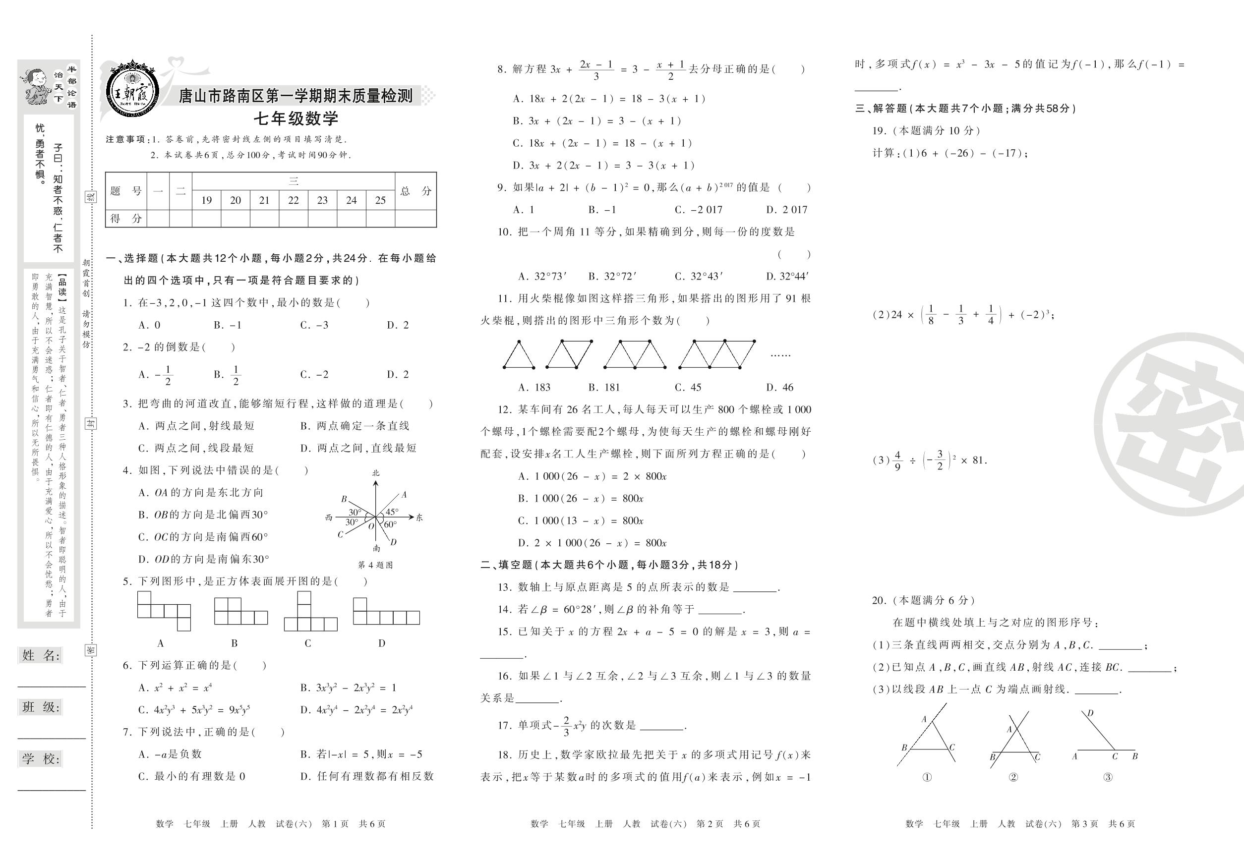 2016-2017学年第一学期唐山市路南区七年级数学试卷(人教版)【6】