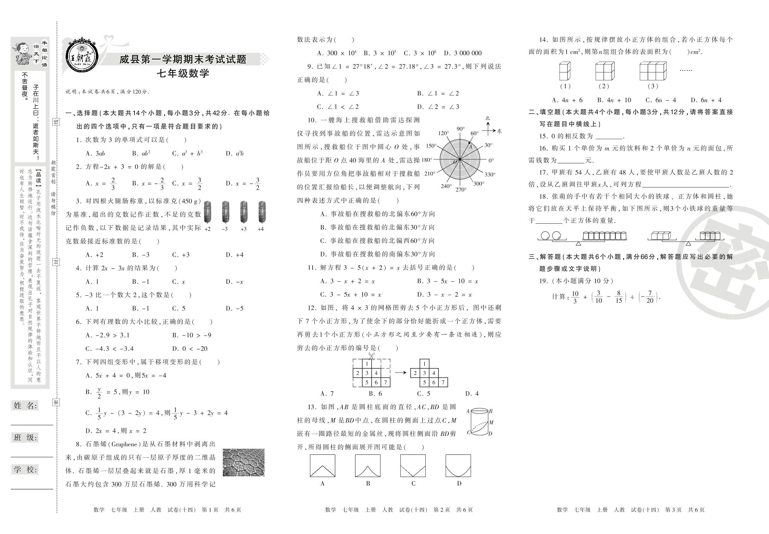 2016-2017学年第一学期邢台市威县七年级数学试卷(人教版)【14】