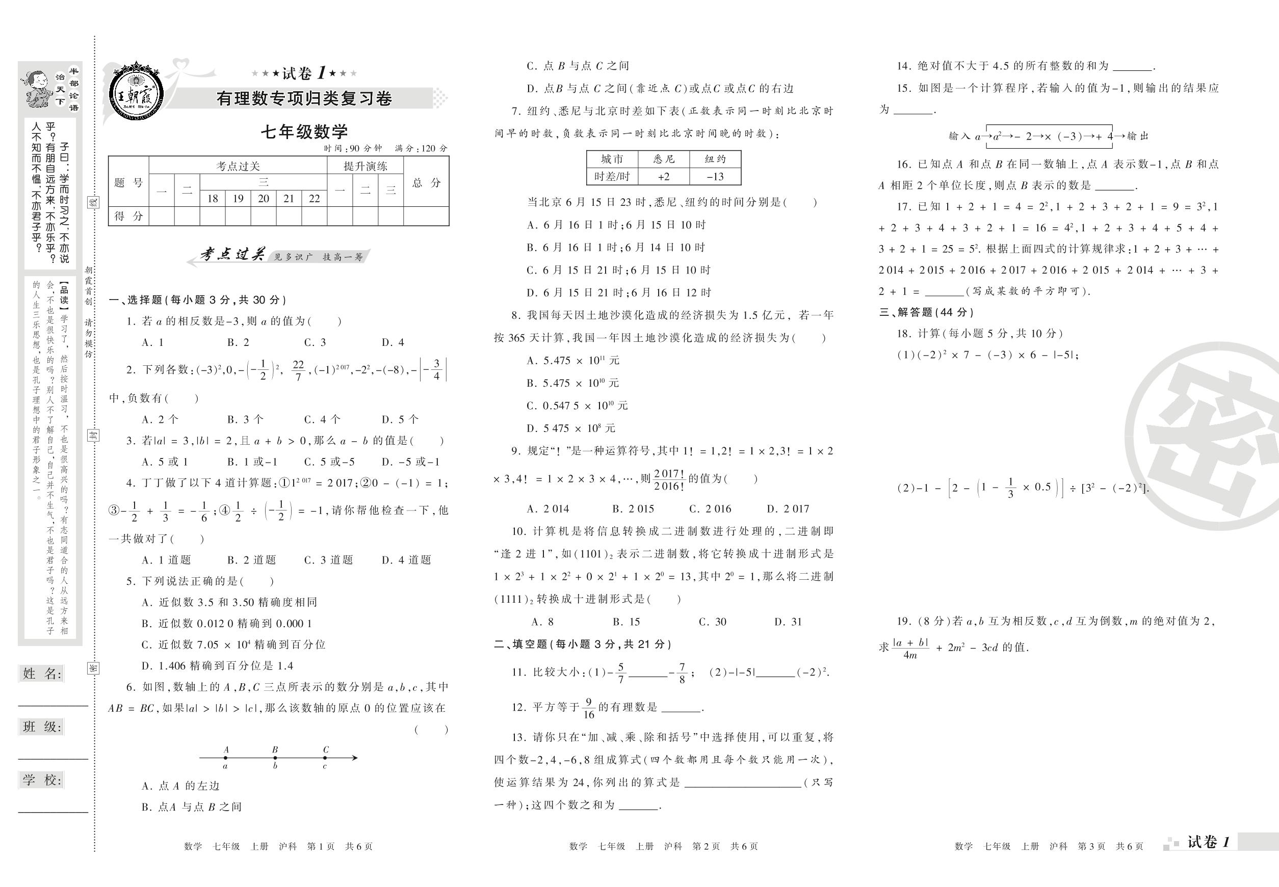 王朝霞期末专项卷七年级上册数学(沪科版)【1】