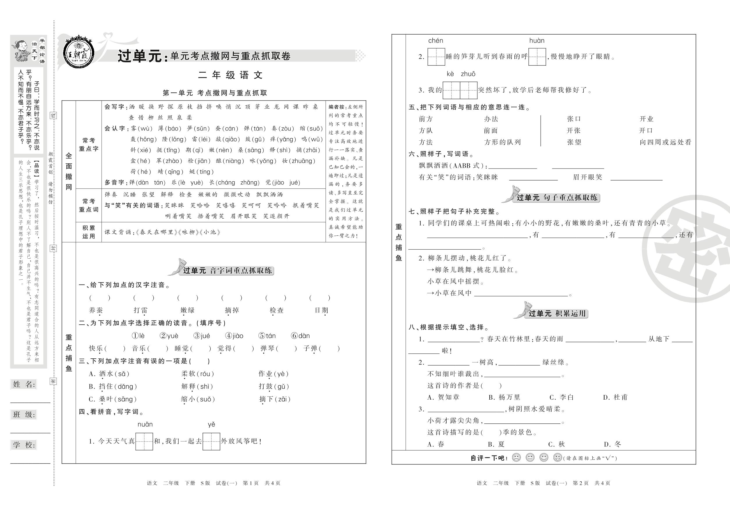 王朝霞期末过单元二年级下册语文(S版)_R21080174208【1】