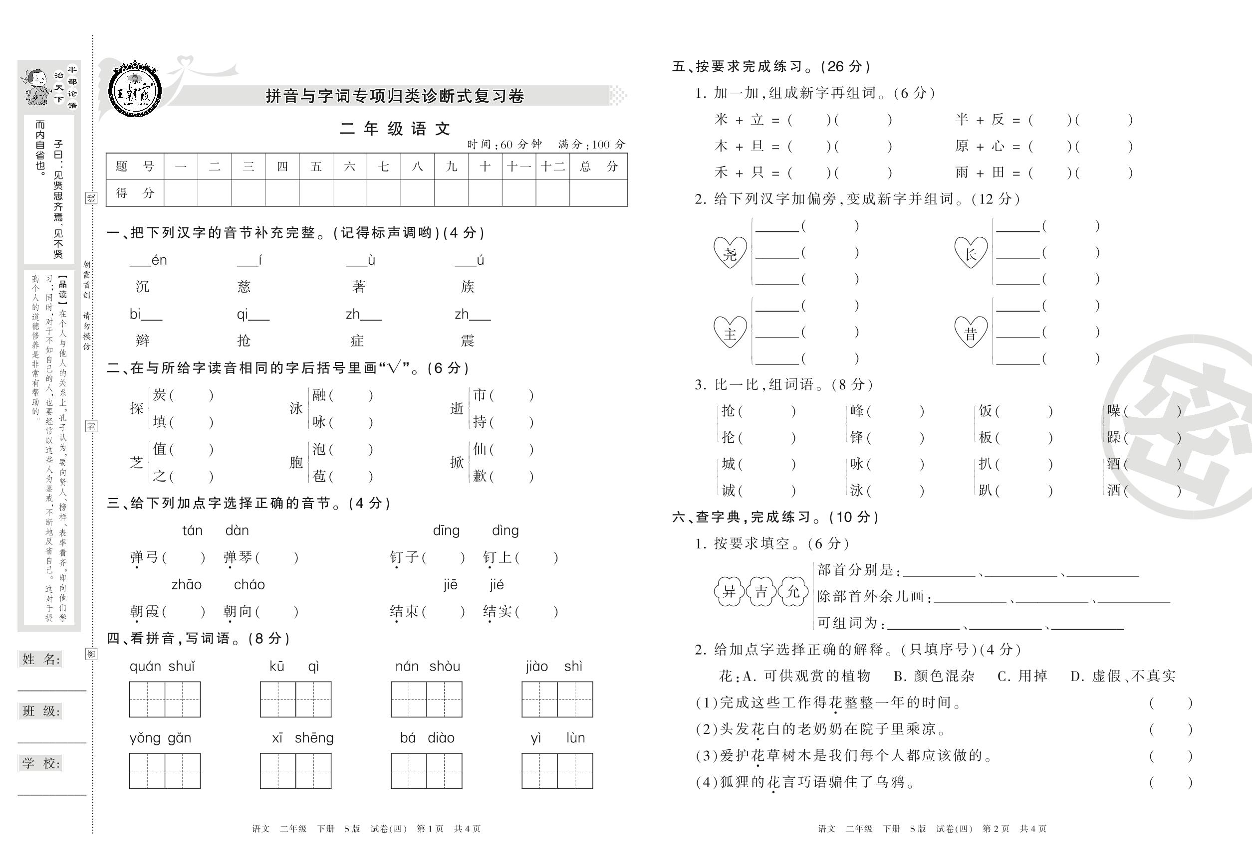 王朝霞期末专项卷二年级下册语文(S版)_R21080174232【4】