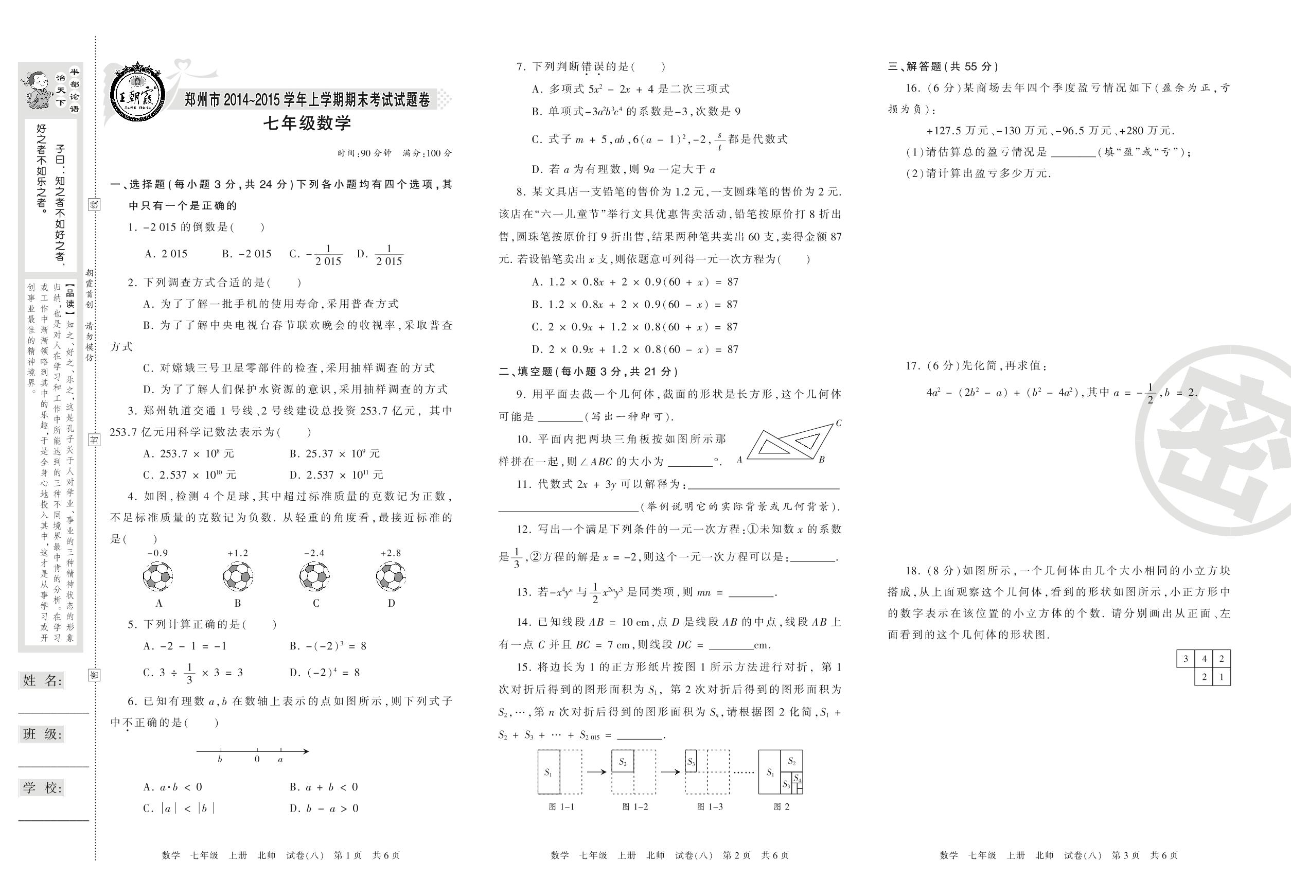 2014-2015学年第一学期郑州市七年级数学试卷(北师版)【8】