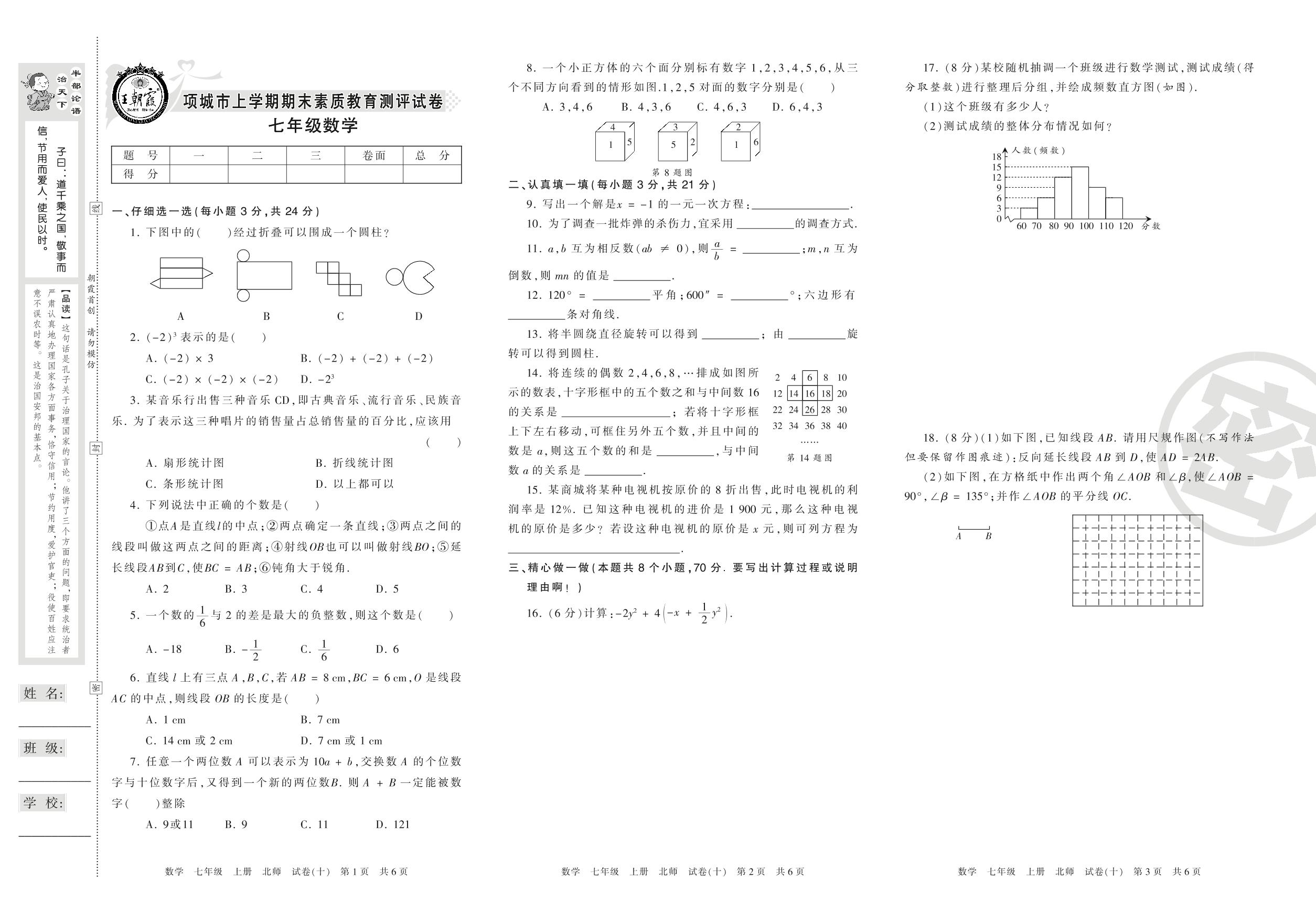 2016-2017学年第一学期项城市七年级数学试卷(北师版)【10】