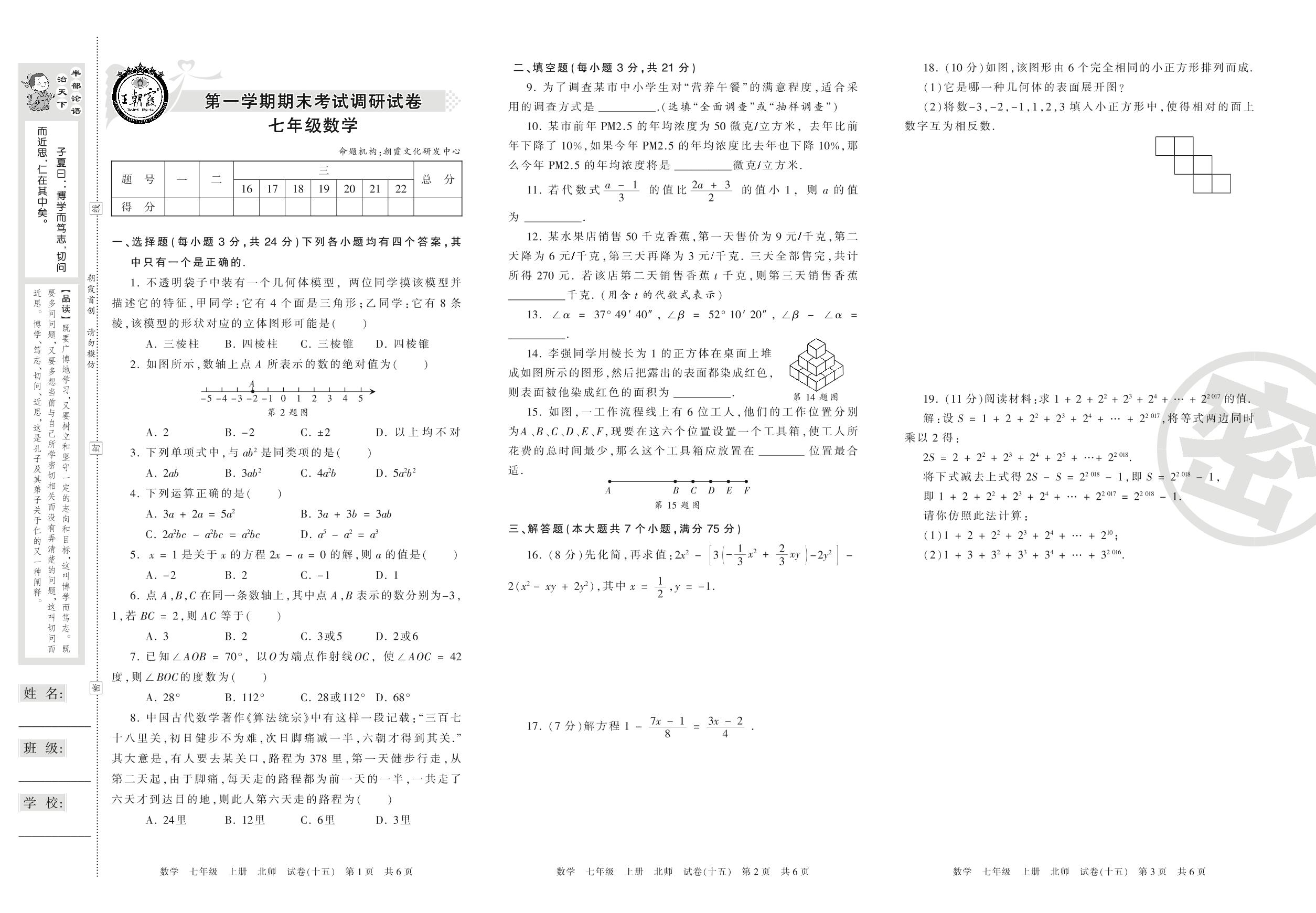 王朝霞期末调研卷七年级上册数学(北师版)【15】