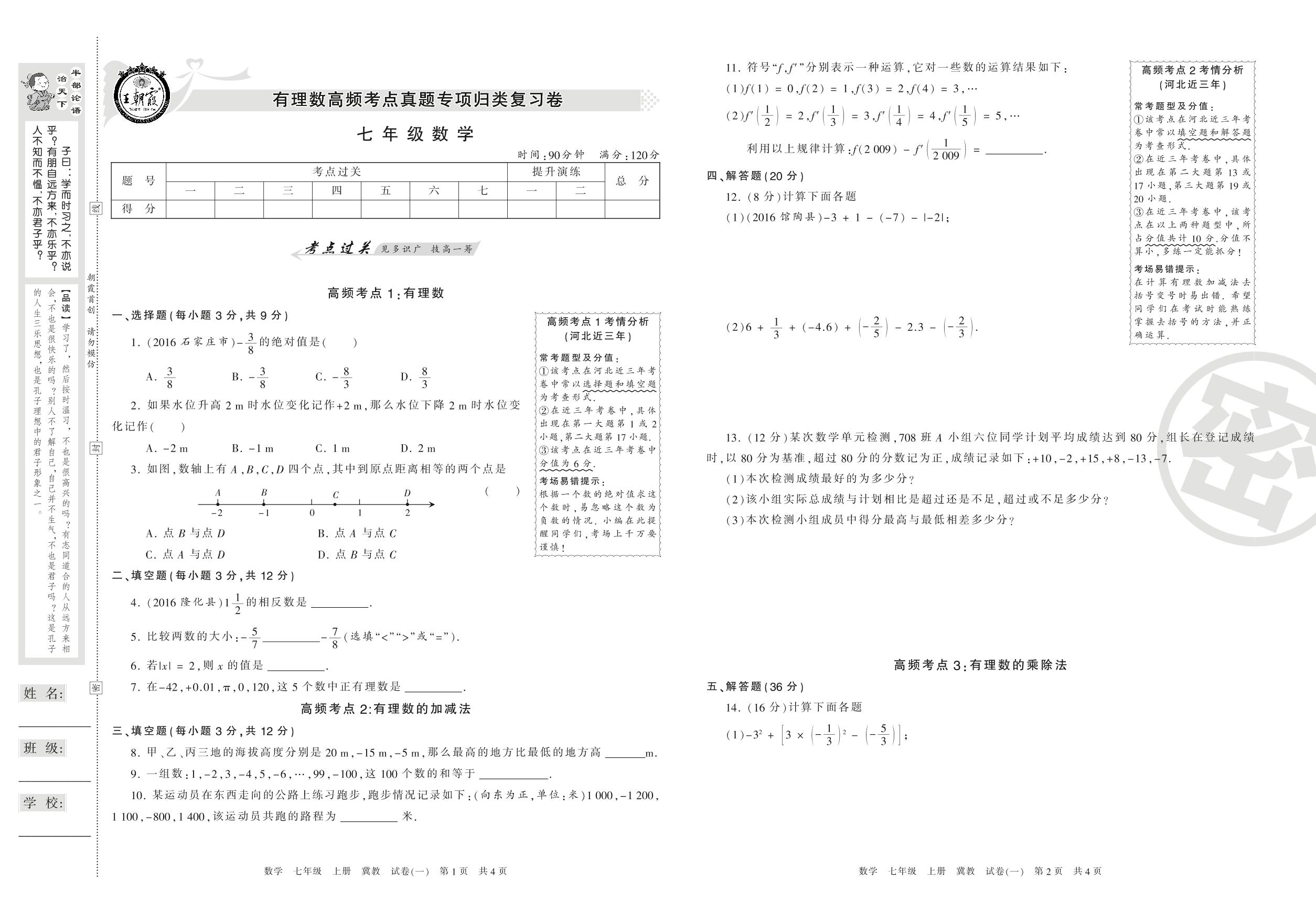 七年级数学冀教版上册专项卷