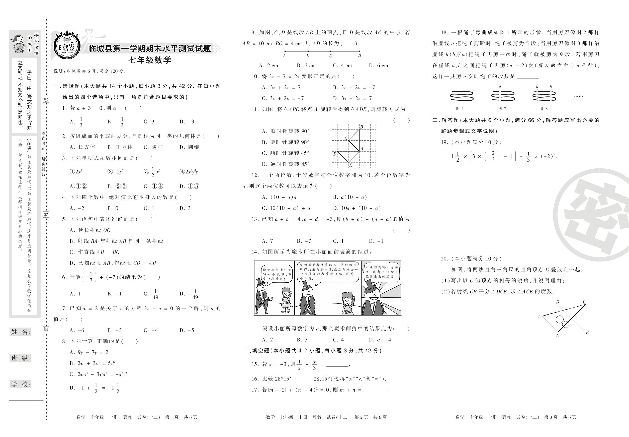 2016-2017学年第一学期邢台市临城县七年级数学试卷(冀教版)【12】