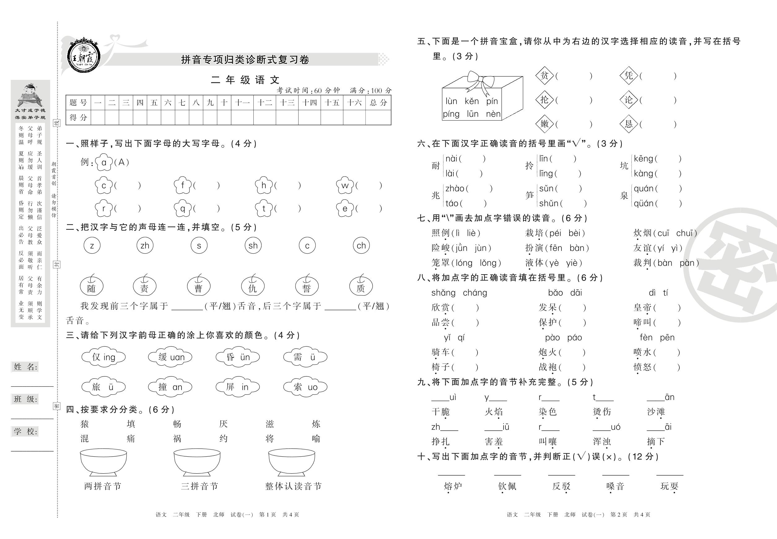 王朝霞期末专项卷二年级下册语文(北师版)_R21080174341【1】