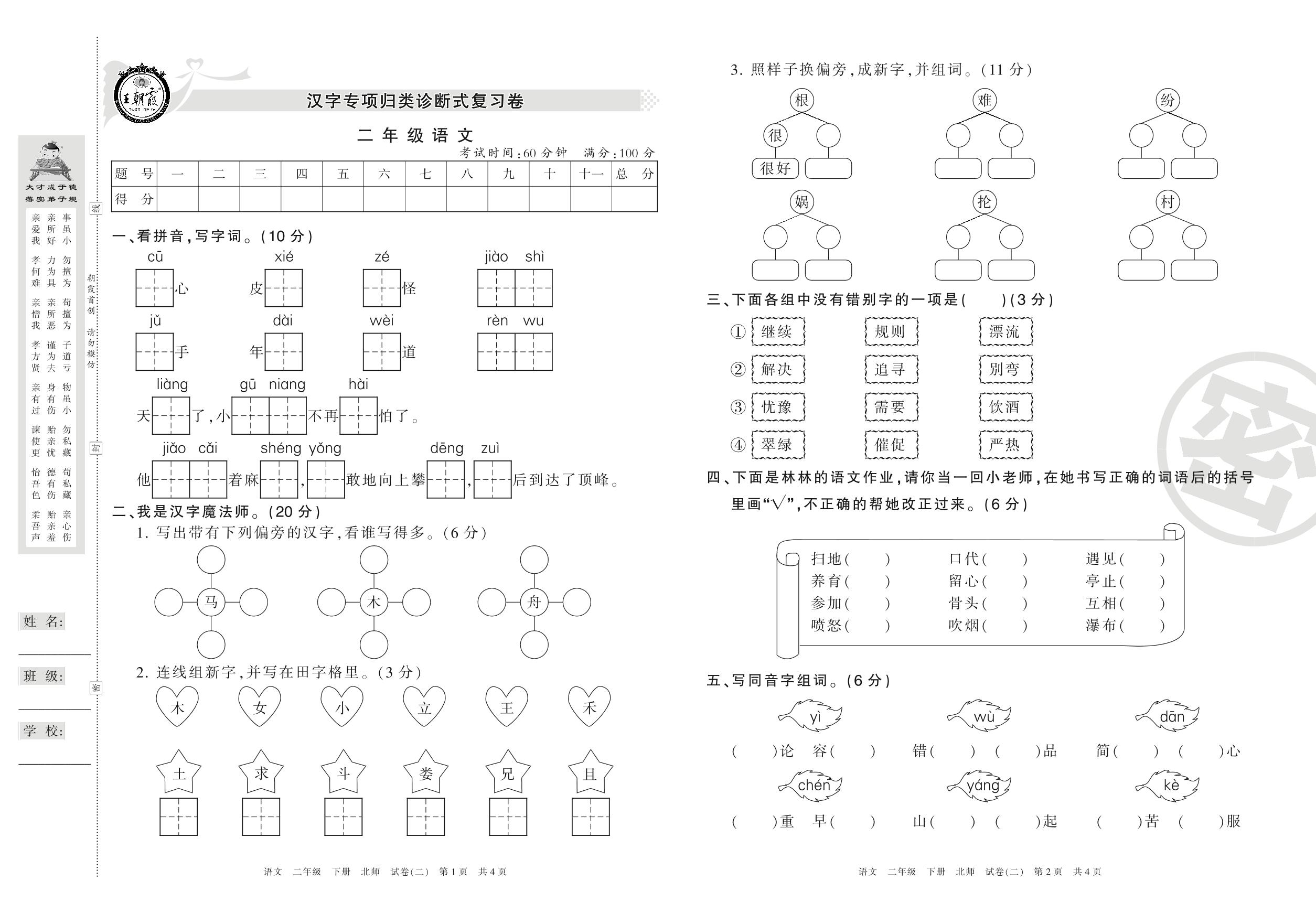 二年级语文北师版下册专项卷
