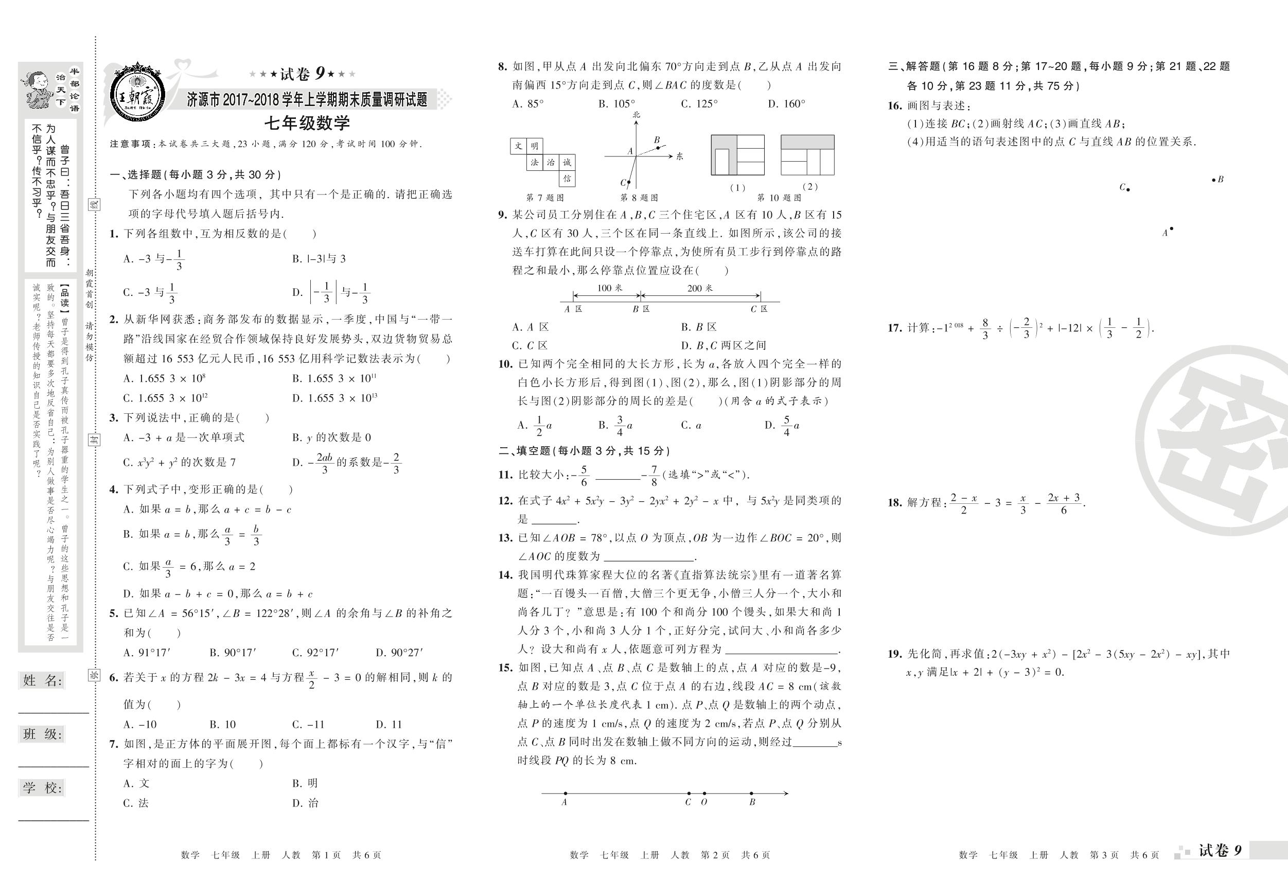 2017-2018学年第一学期济源市七年级数学试卷(人教版)【9】