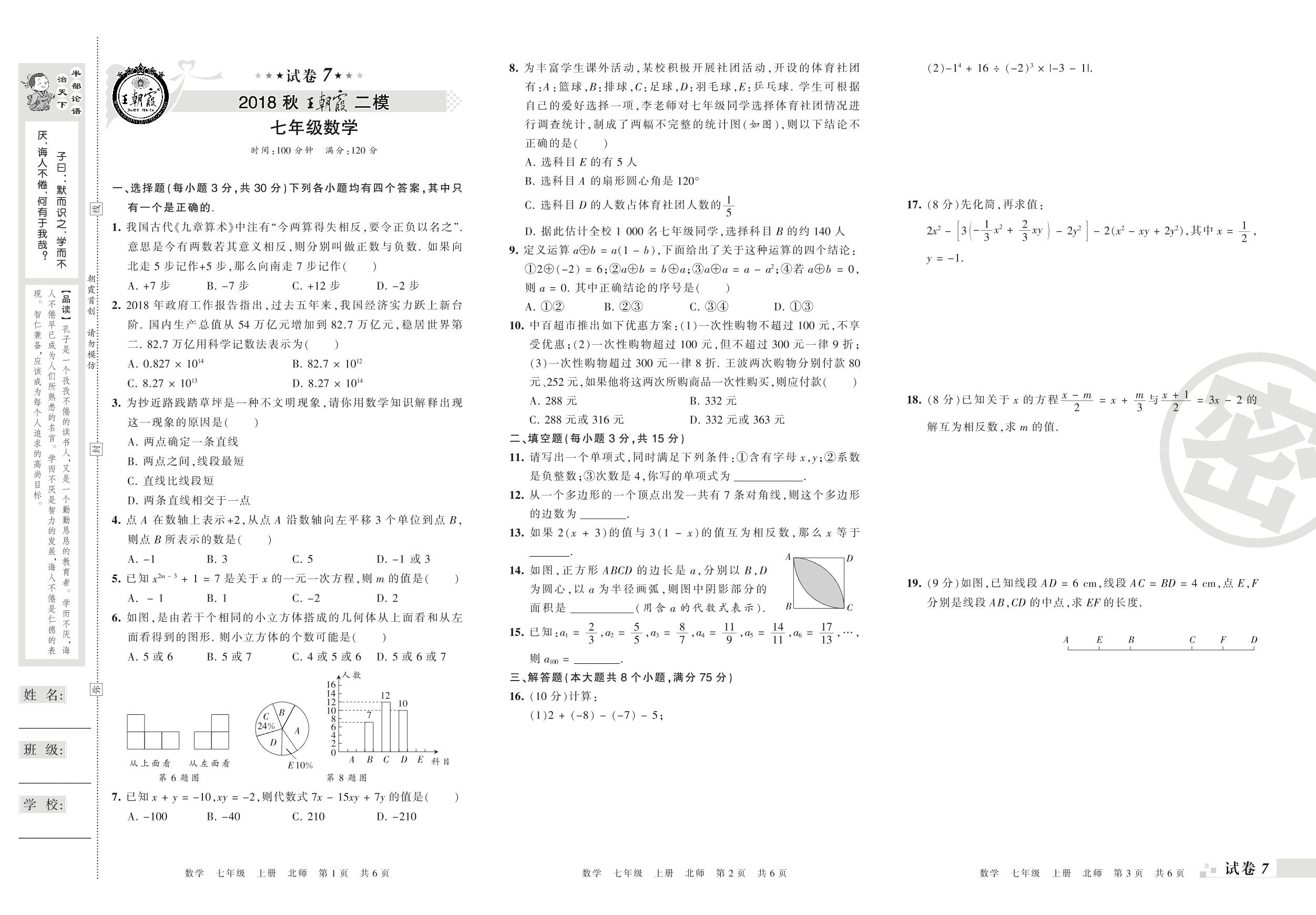 王朝霞期末模拟卷七年级上册数学(北师版)_R210805175849【7】