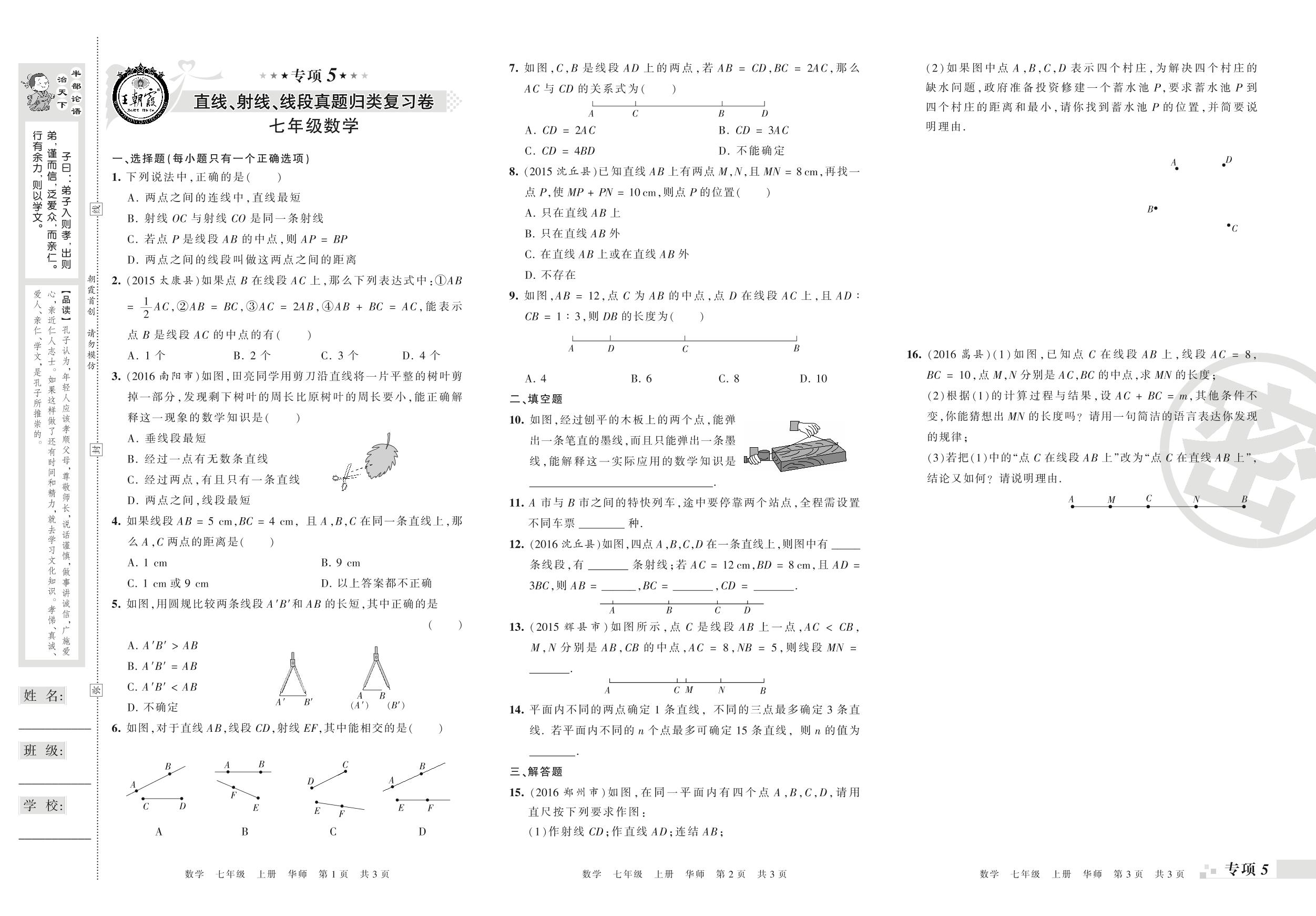 王朝霞期末专项卷——直线、射线、线段、角真题归类复习卷七年级上册数学(华师版)_R210805175945【0】