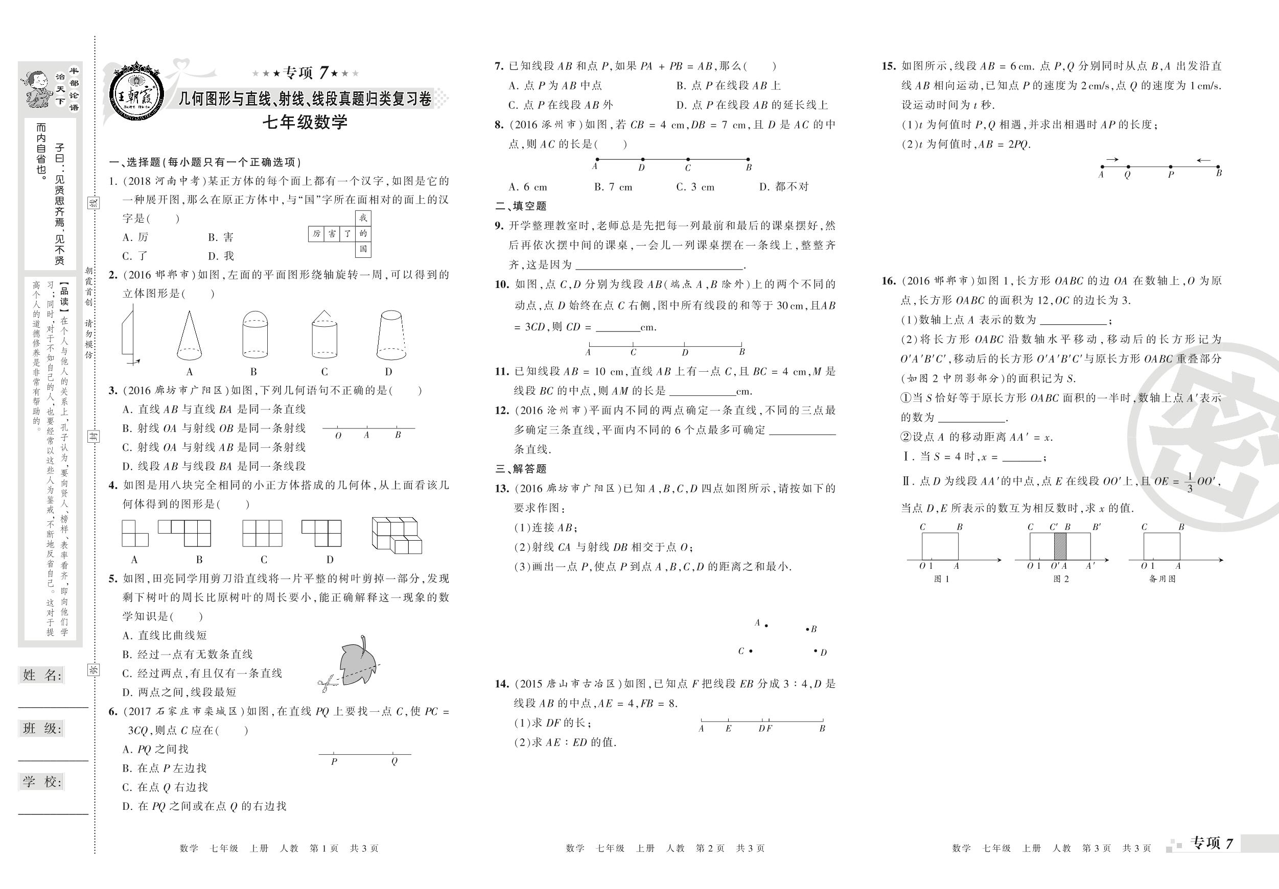 王朝霞期末专项卷——几何图形与直线、射线、线段、角真题归类复习卷七年级上册数学(人教版)_R210805180306【0】