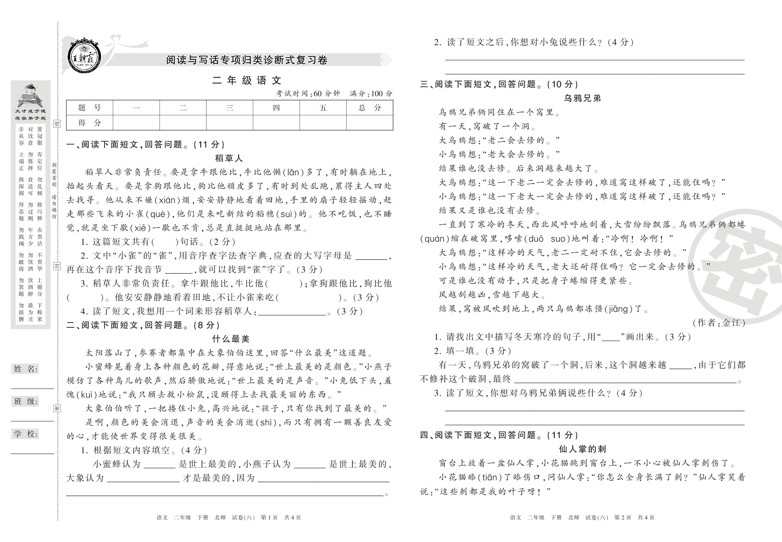 王朝霞期末专项卷二年级下册语文(北师版)_R21080174402【6】