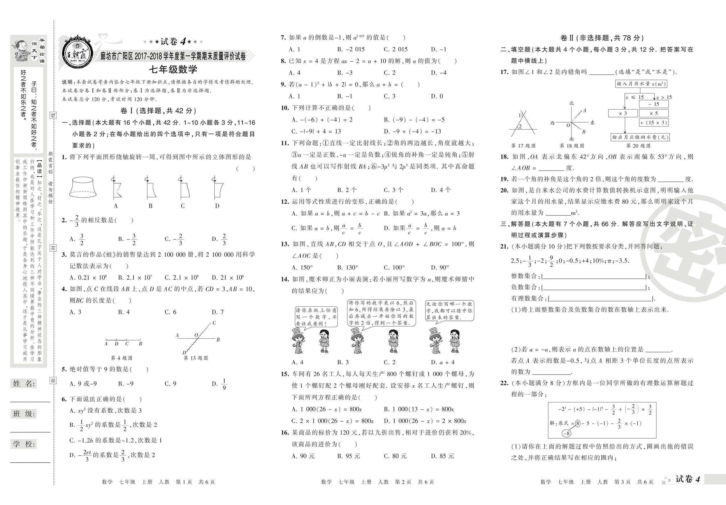 2017-2018学年第一学期廊坊市广阳区七年级数学试卷(人教版)【4】
