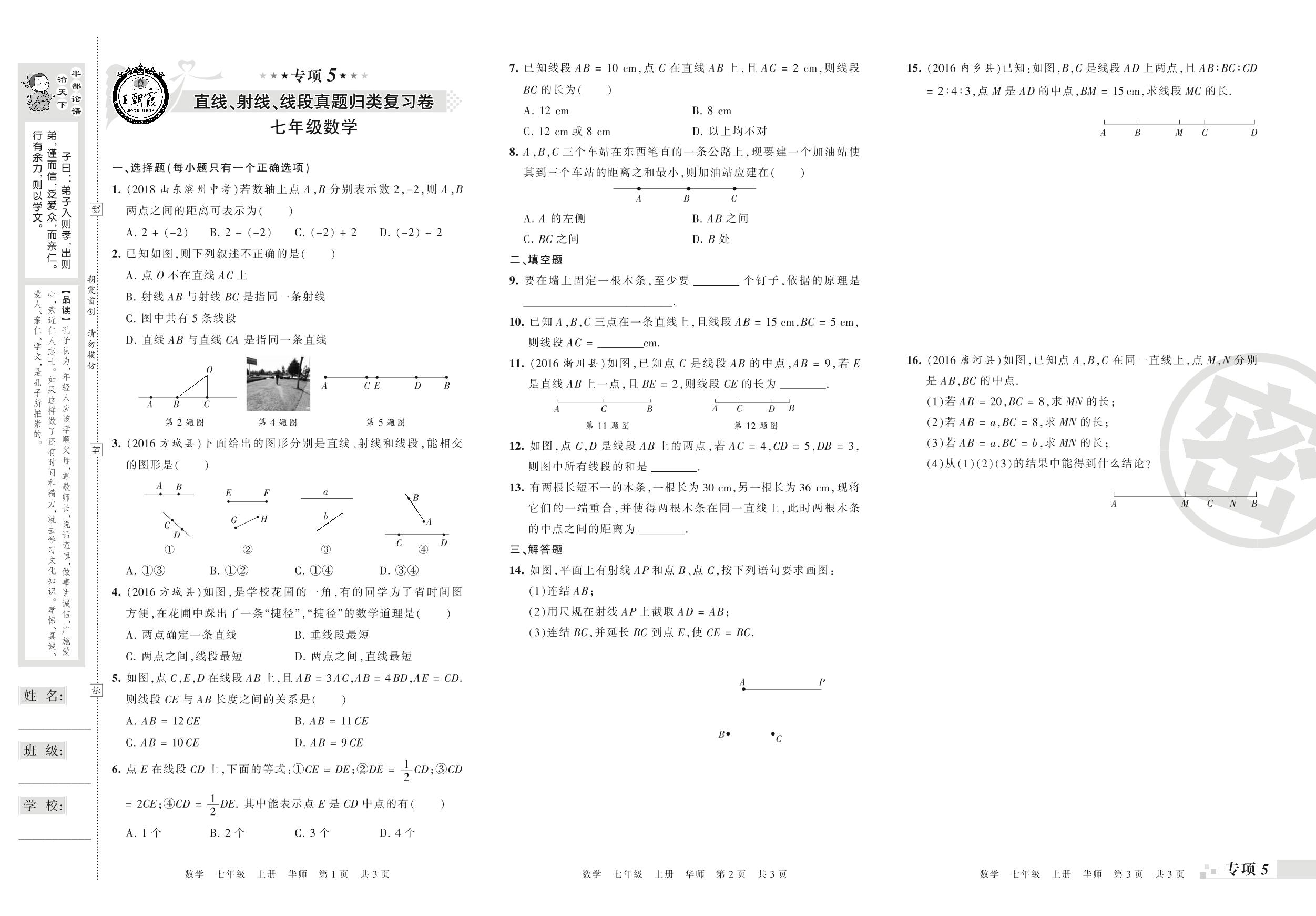 王朝霞期末专项卷——直线、射线、线段、角真题归类复习卷七年级上册数学(华师版)_R210805180655【0】