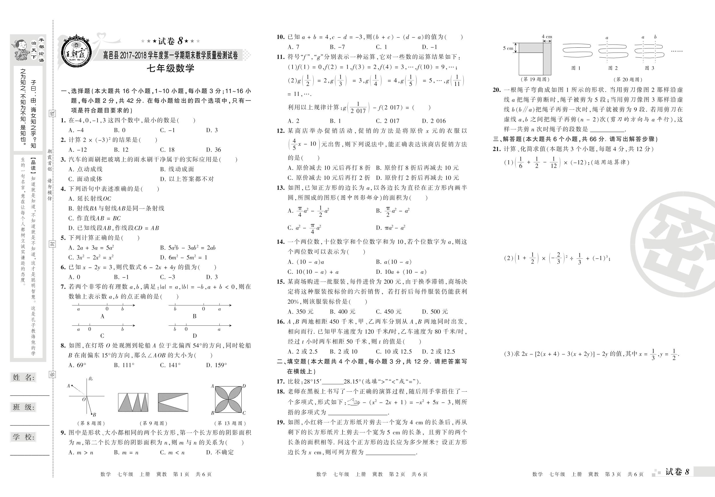2017-2018学年第一学期石家庄市高邑县七年级数学试卷(冀教版)【8】