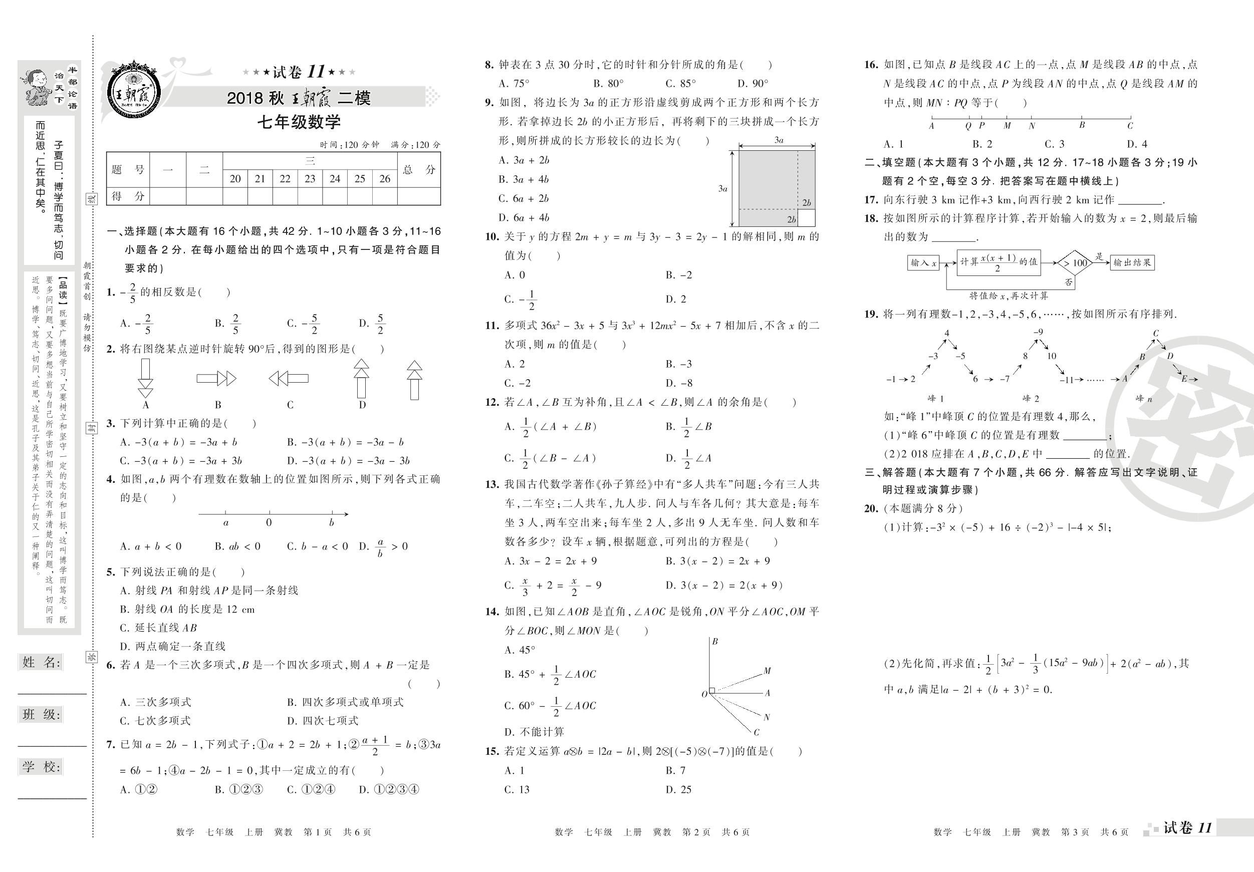王朝霞期末模拟卷七年级上册数学(冀教版)_R210805180859【11】
