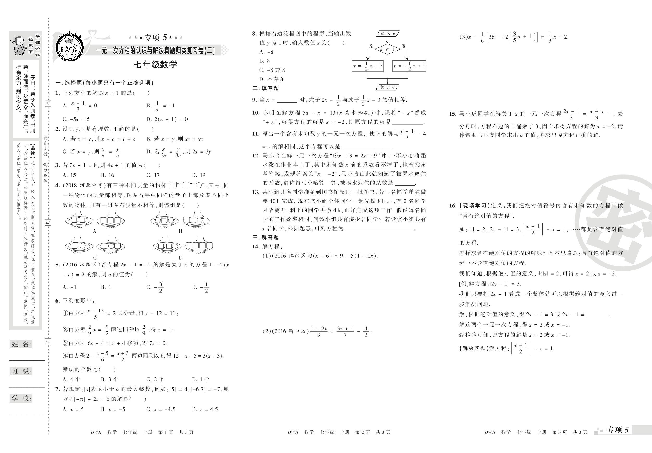 王朝霞期末专项卷——一元一次方程的认识与解法(二)、一元一次方程的应用真题归类复习卷七年级上册数学(人教版)_R210805180922【0】
