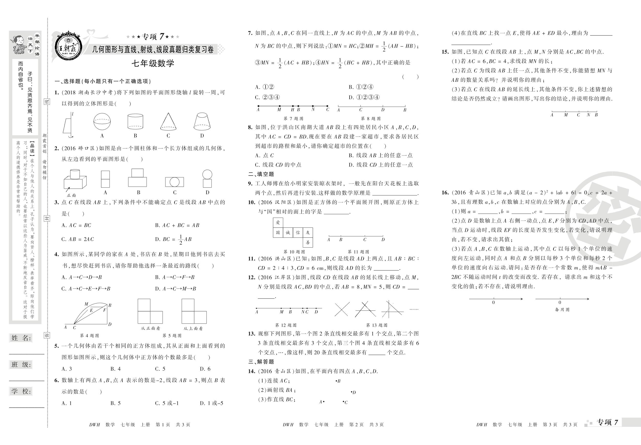 王朝霞期末专项卷——几何图形与直线、射线、线段、角真题归类复习卷七年级上册数学(人教版)_R210805180927【0】