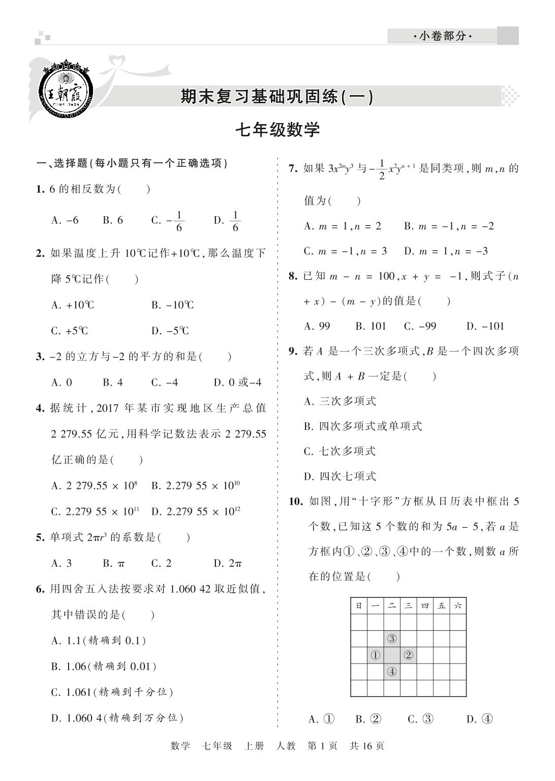 王朝霞期末小卷——期末复习基础巩固练七年级上册数学(人教版)【0】