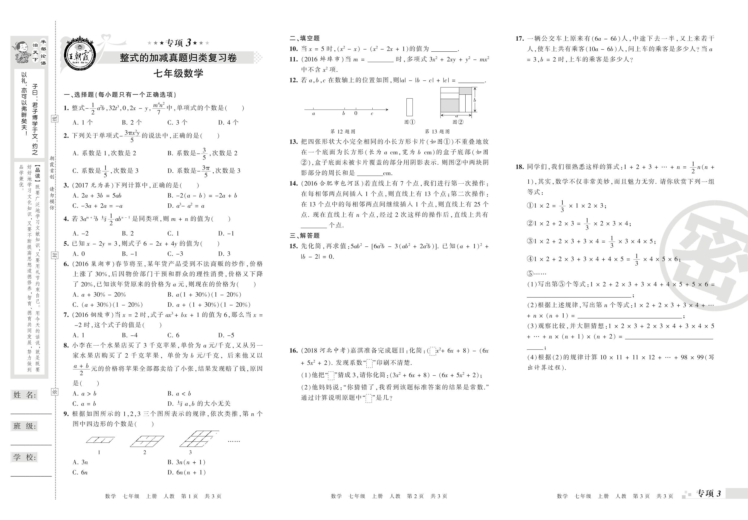 王朝霞期末专项卷——整式的加减、一元一次方程的认识与解法(一)真题归类复习卷七年级上册数学(人教版)_R210805181213【0】